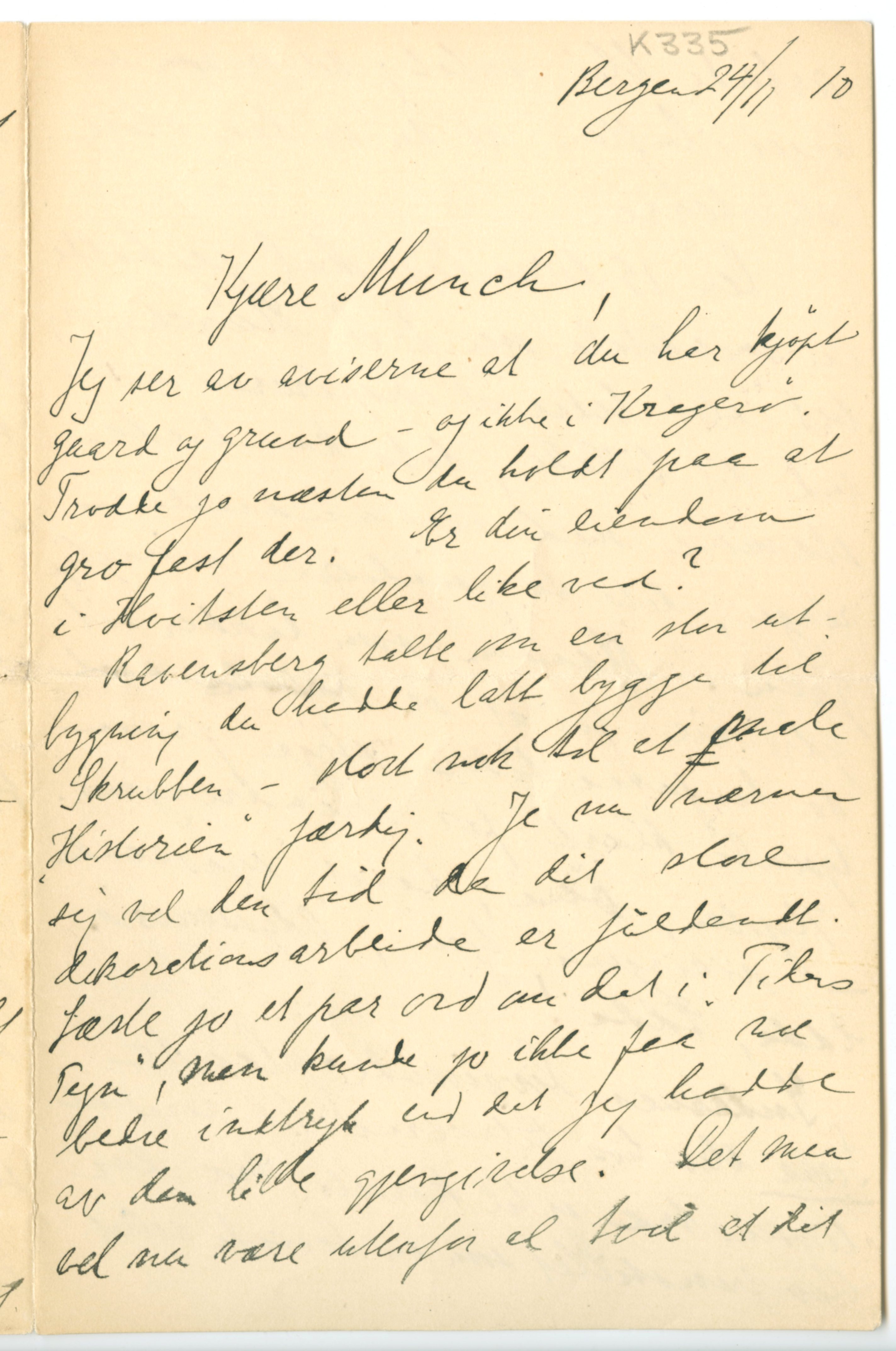 MM K 335, Munchmuseet. Datert 24.11.1910. Brev fra Sigurd Høst.