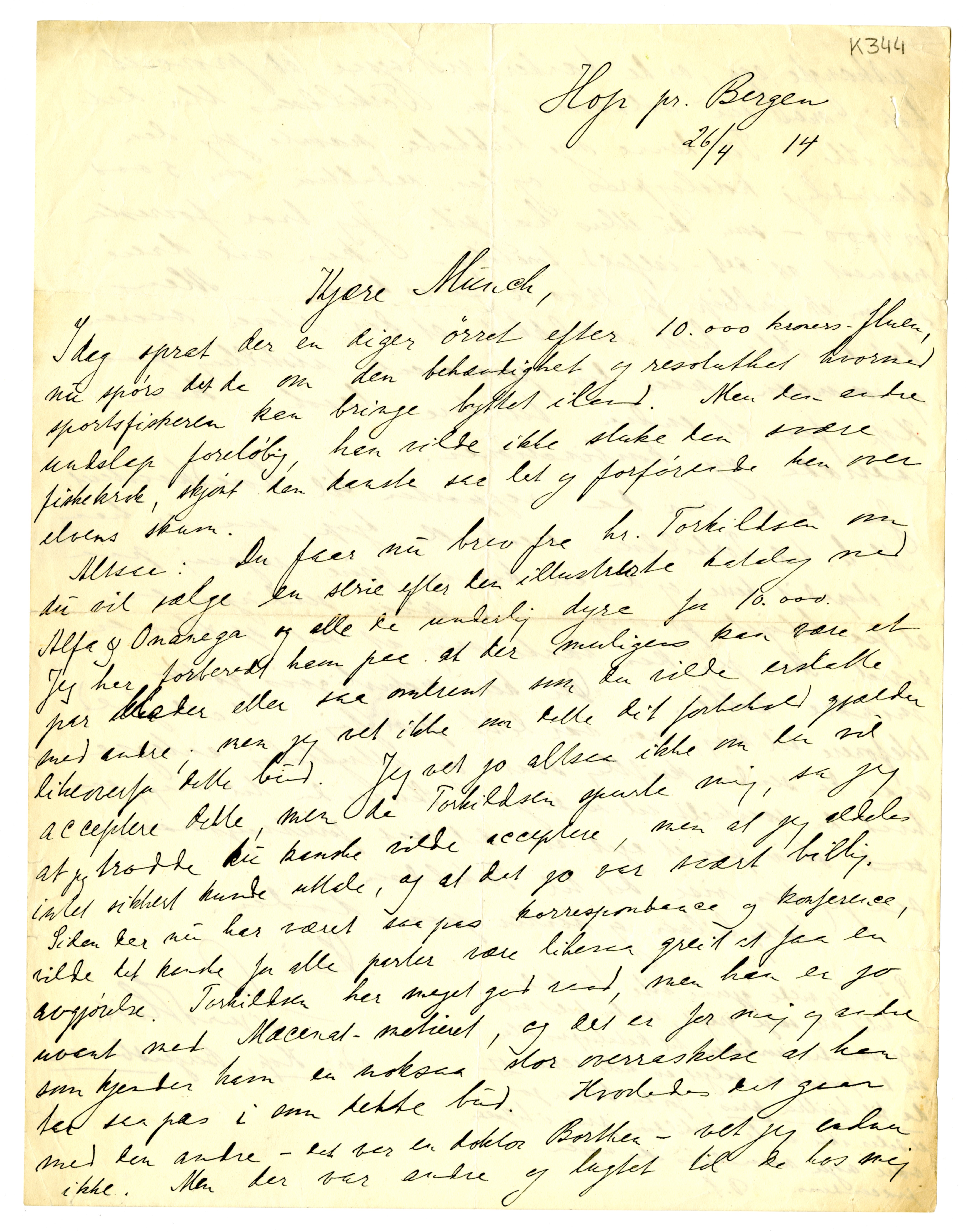 MM K 344, Munchmuseet. Datert 26.04.1914. Brev fra Sigurd Høst.