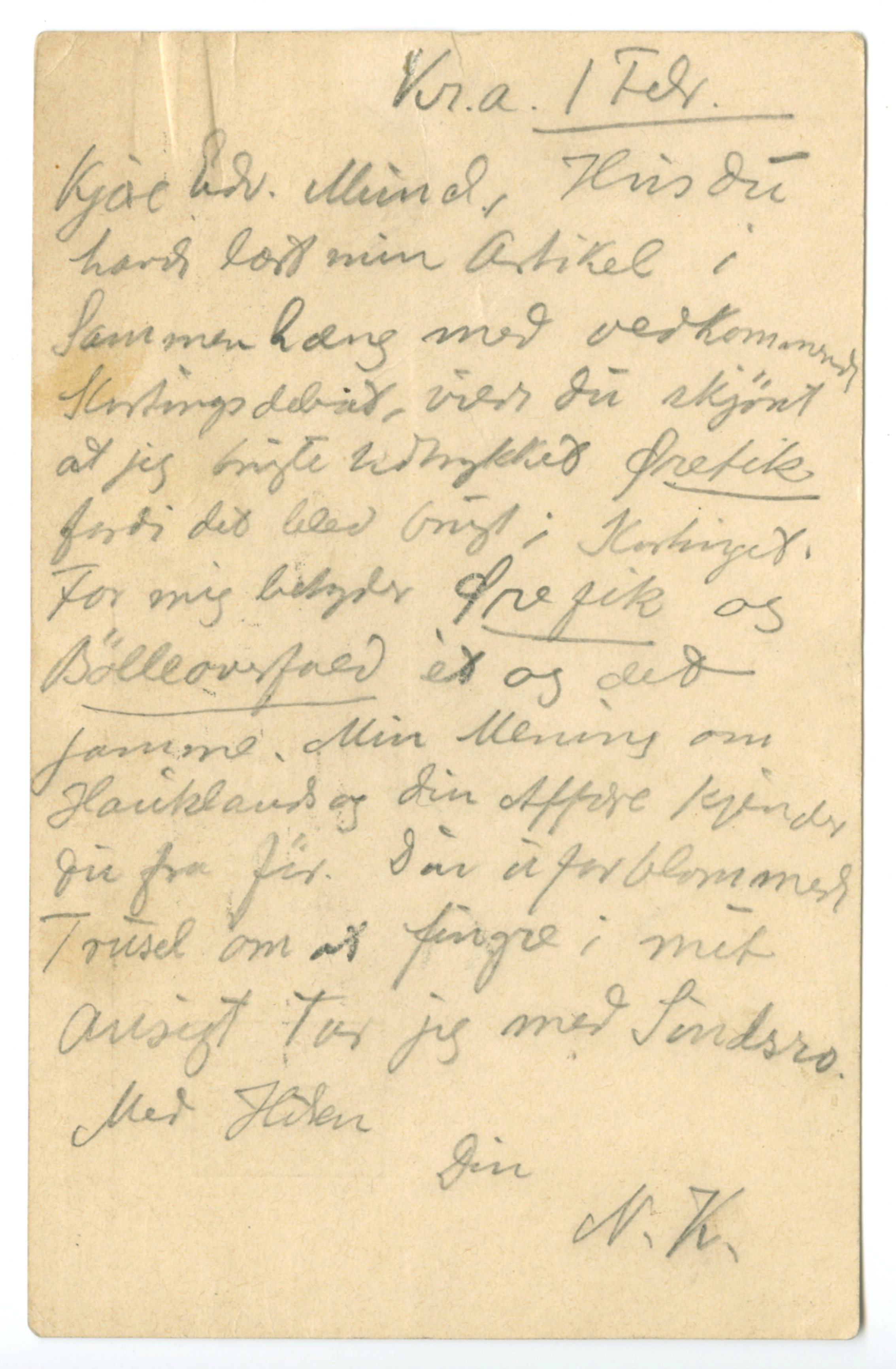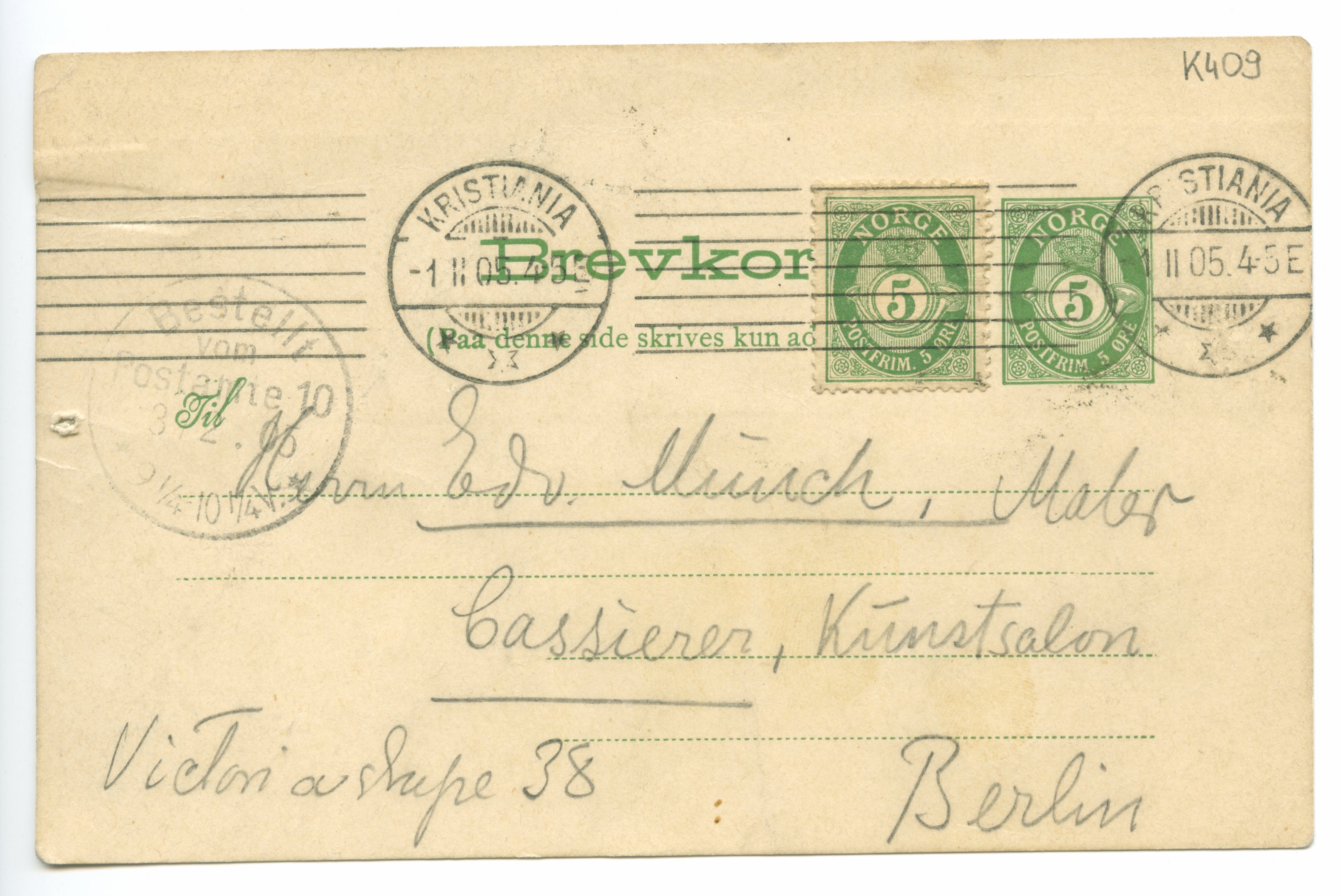MM K 409, Munchmuseet. Datert 01.02.1905. Brev fra Nils Kiær.
