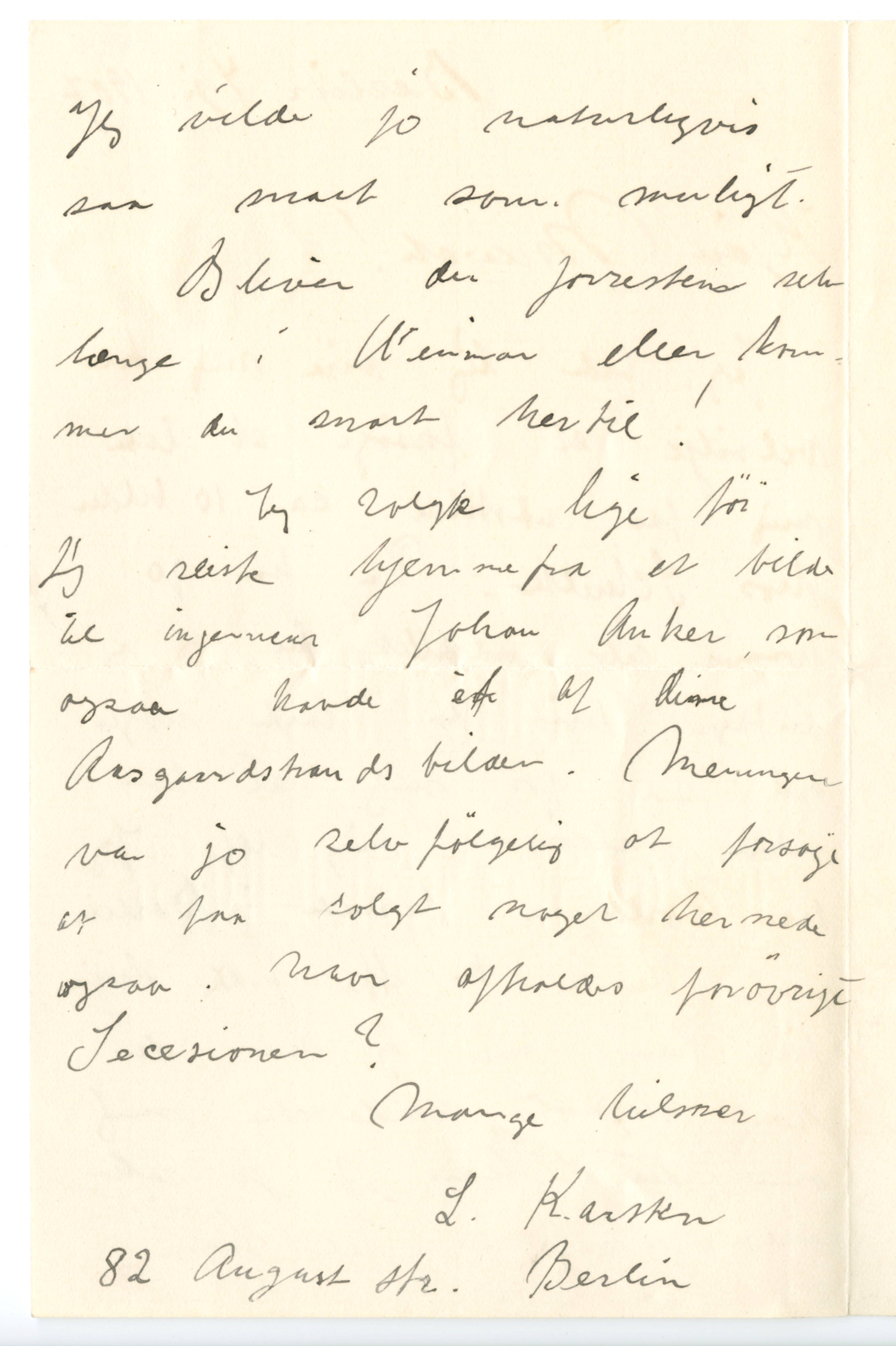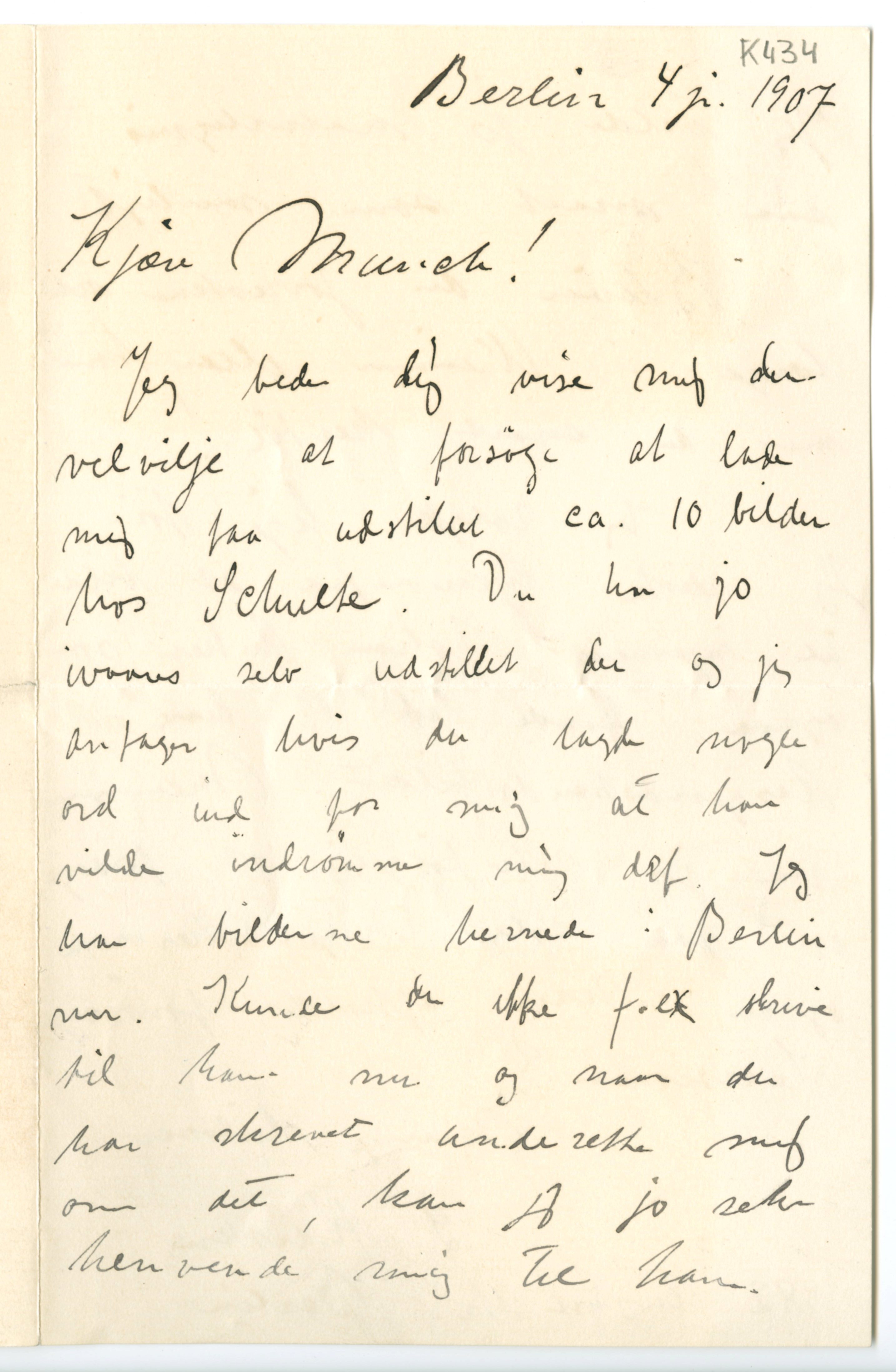 MM K 434, Munchmuseet. Datert 04.01.1907. Brev fra Ludvig Karsten.