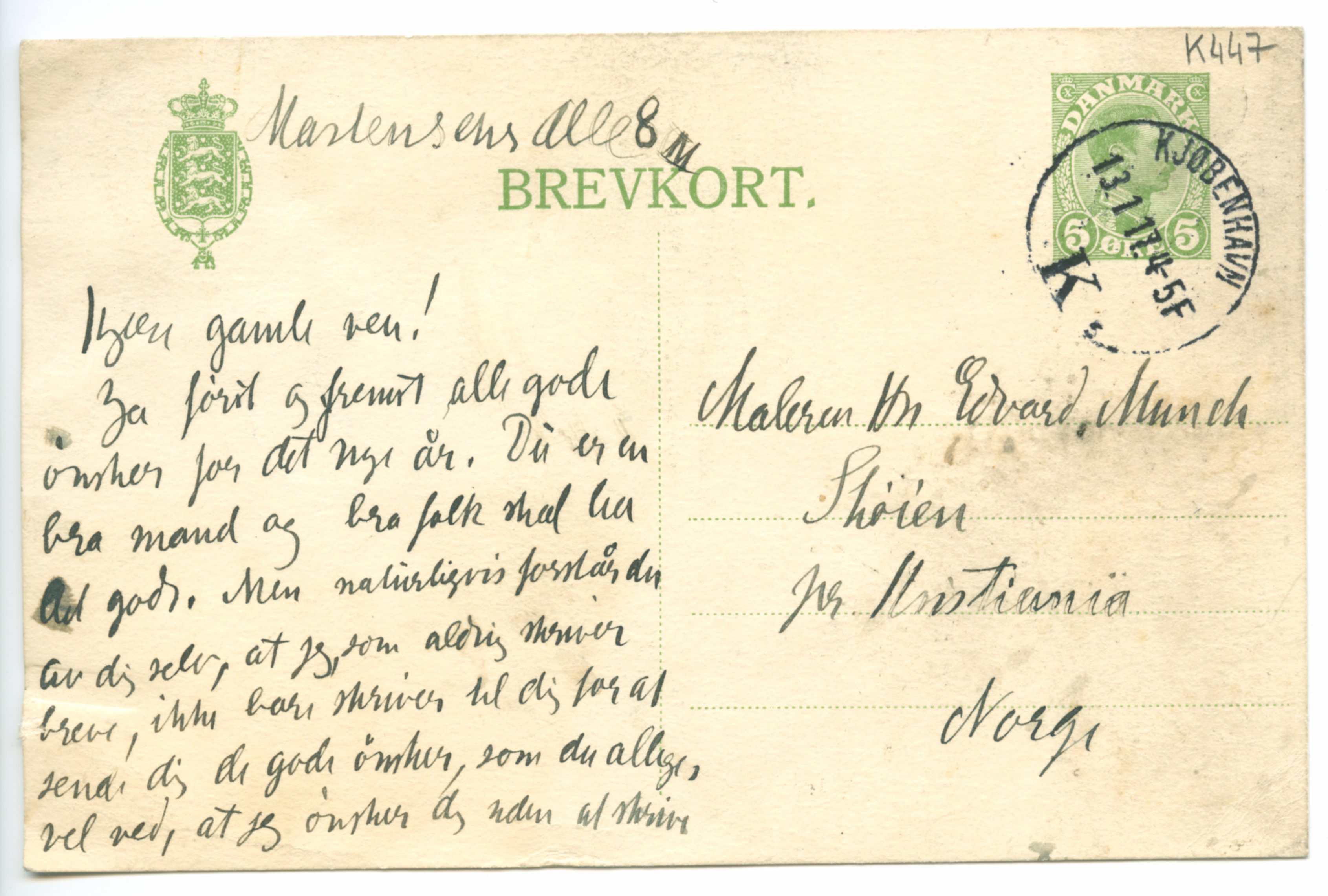 MM K 447, Munchmuseet. Datert 13.01.1917. Brev fra Karl Konow.
