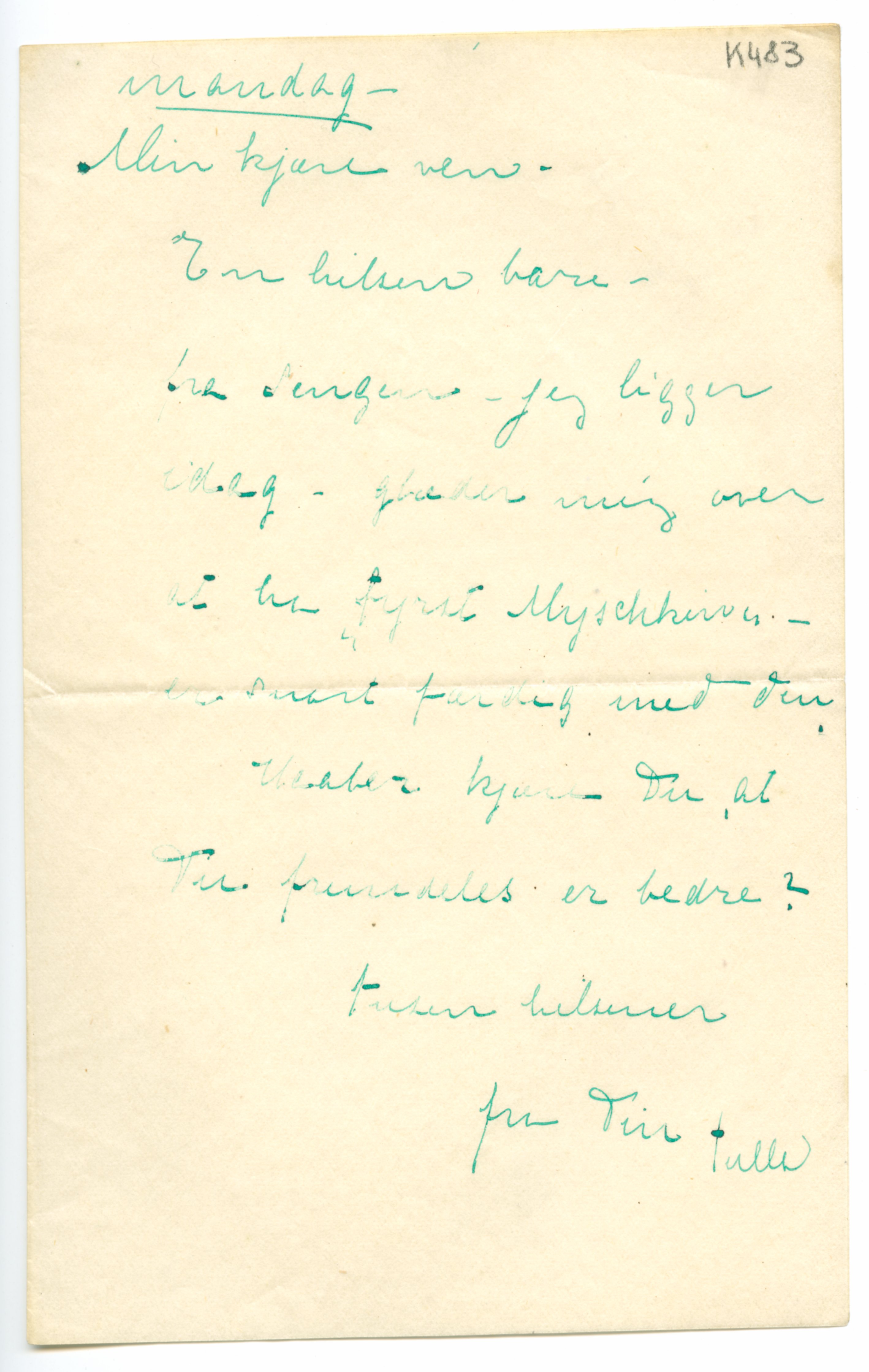 MM K 483, Munchmuseet. Ikke datert. Brev fra Tulla Larsen.