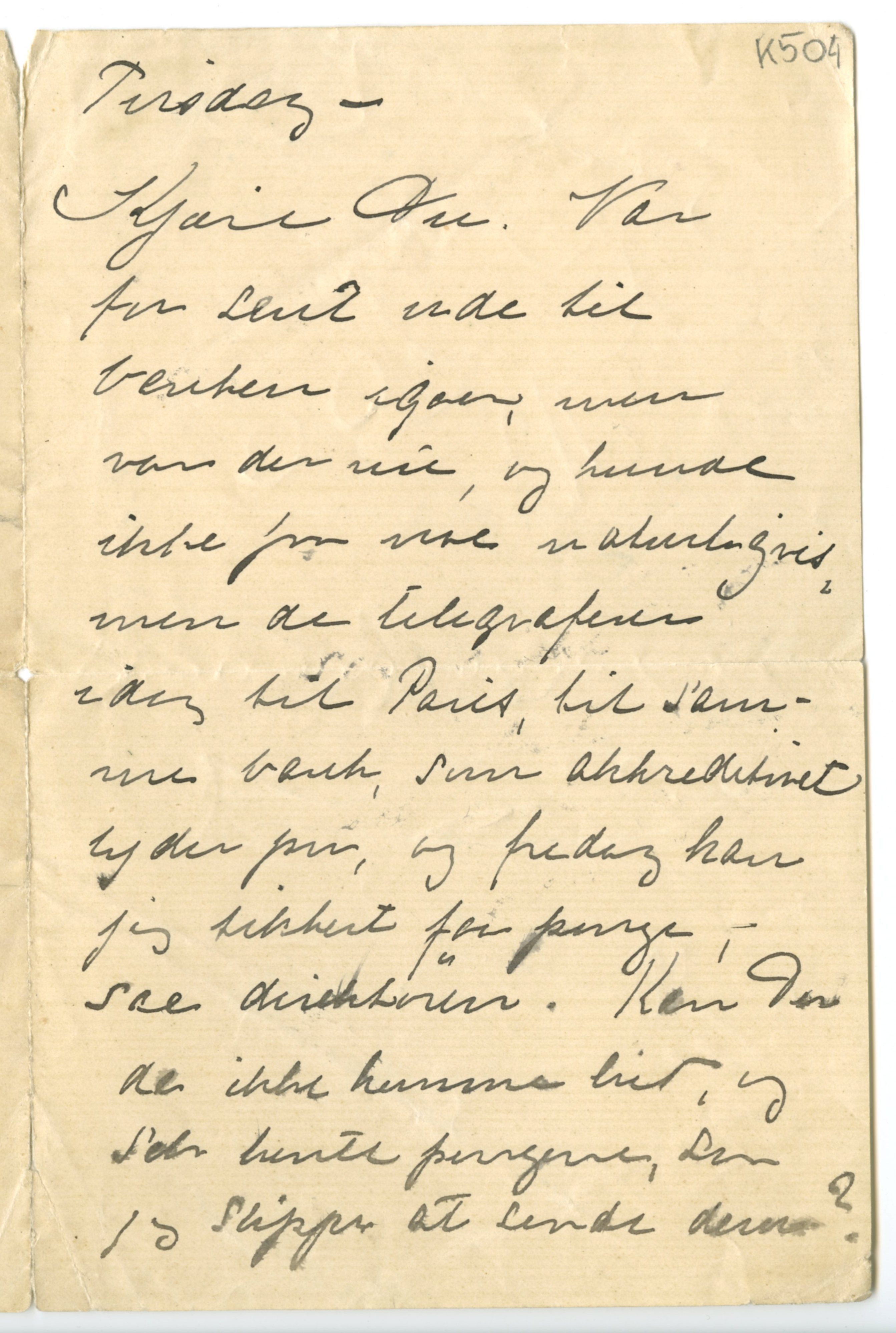 MM K 504, Munchmuseet. Ikke datert. Brev fra Tulla Larsen.