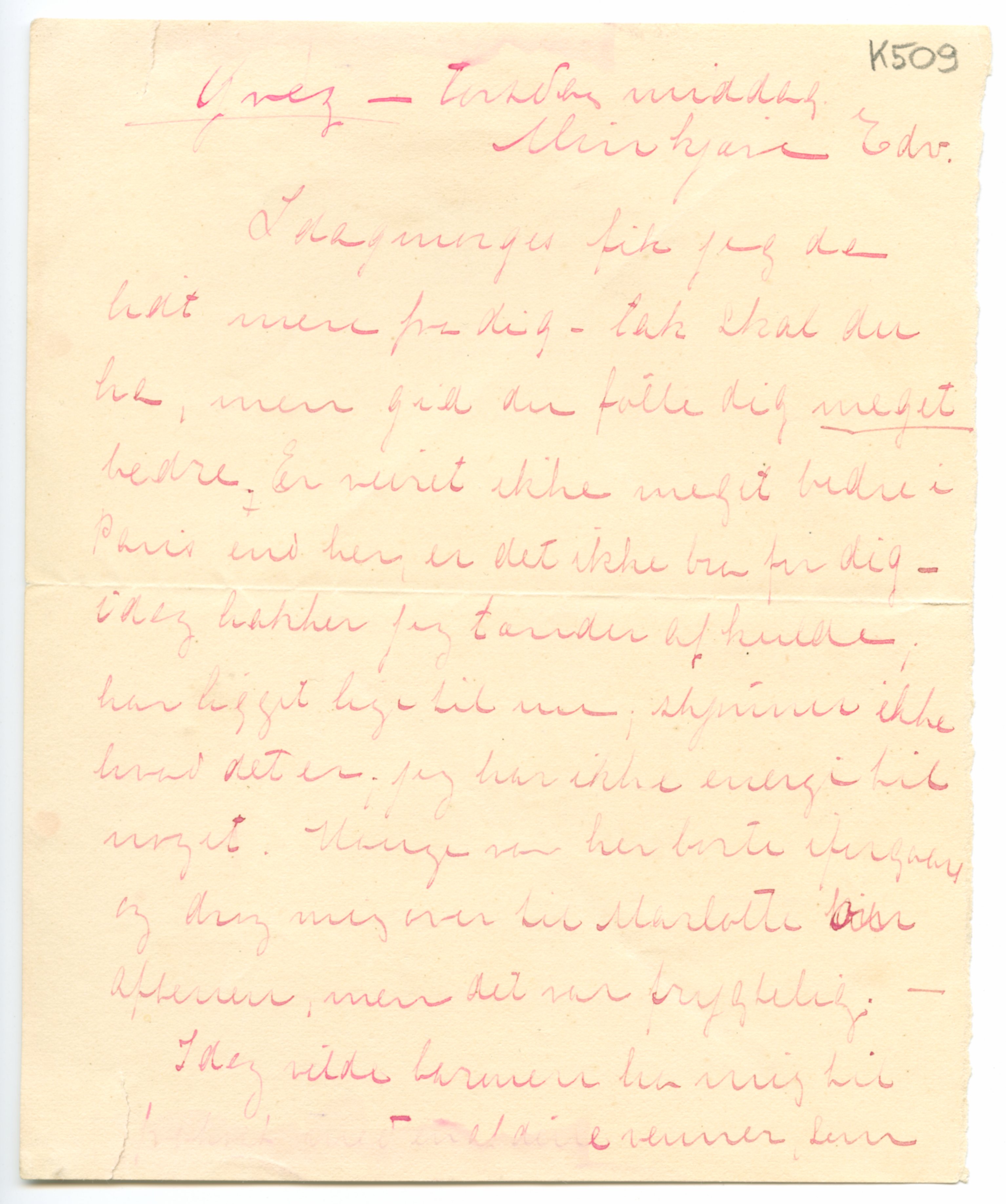 MM K 509, Munchmuseet. Ikke datert. Brev fra Tulla Larsen.