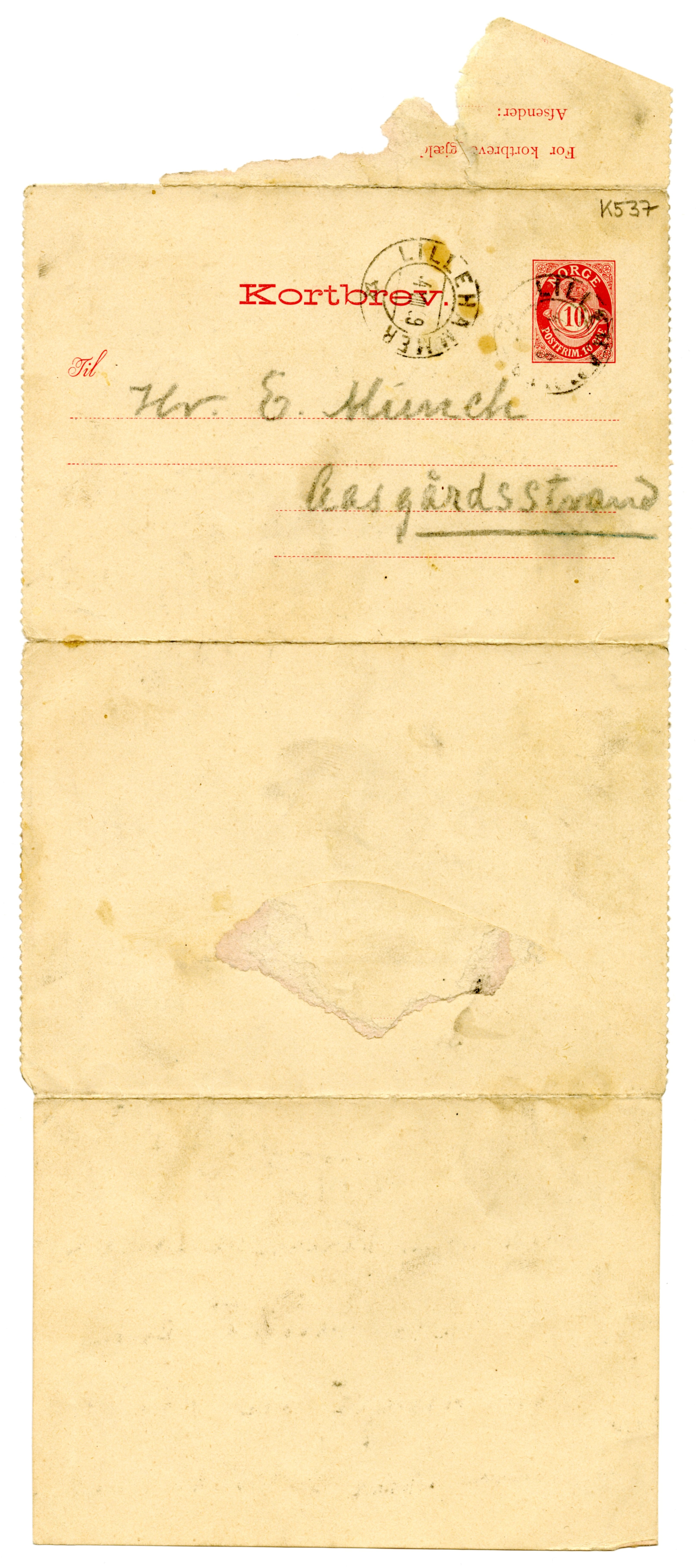 MM K 537, Munchmuseet. Datert 04.08.1899. Brev fra Tulla Larsen.