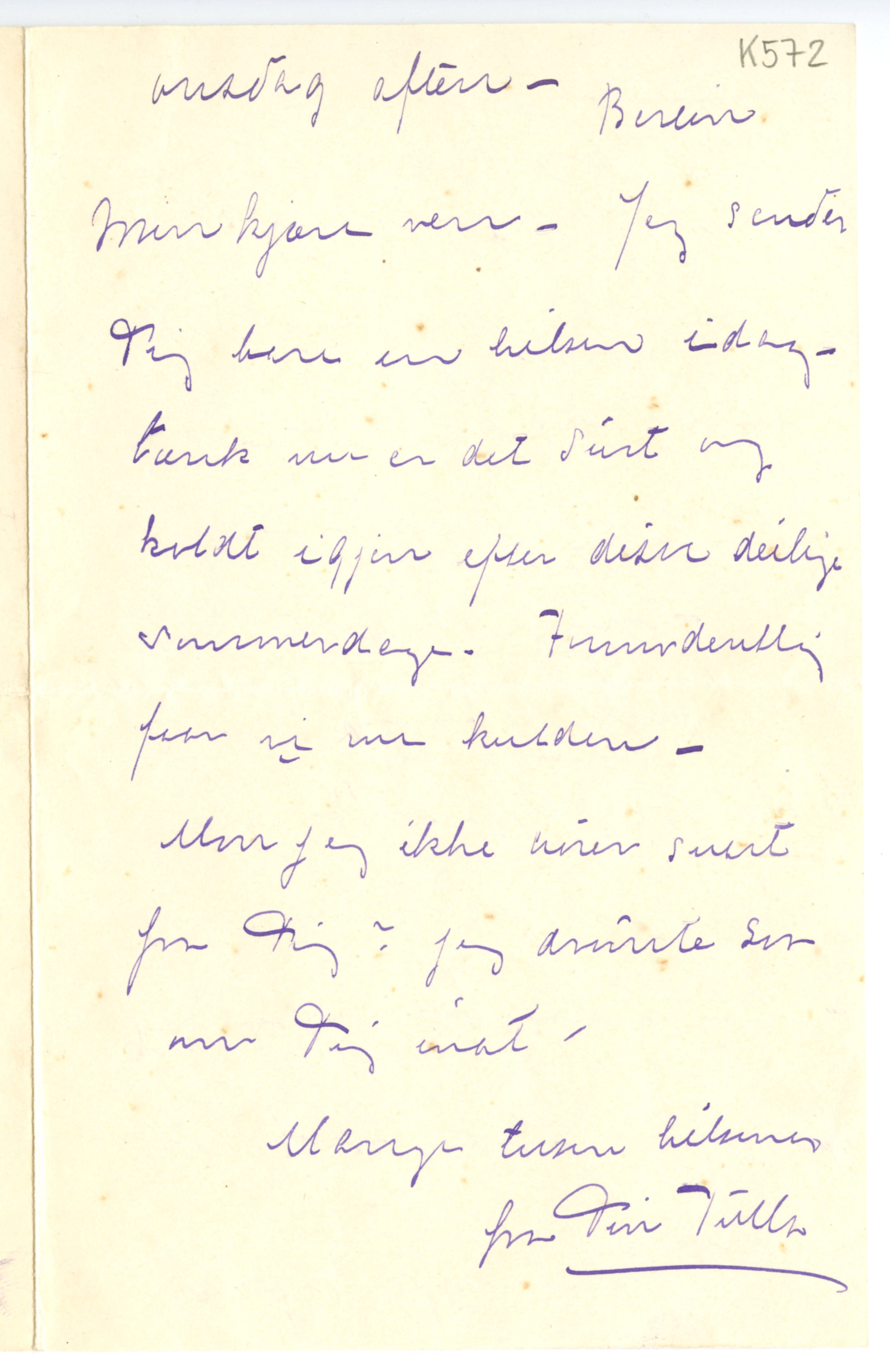 MM K 572, Munchmuseet. Ikke datert. Brev fra Tulla Larsen.