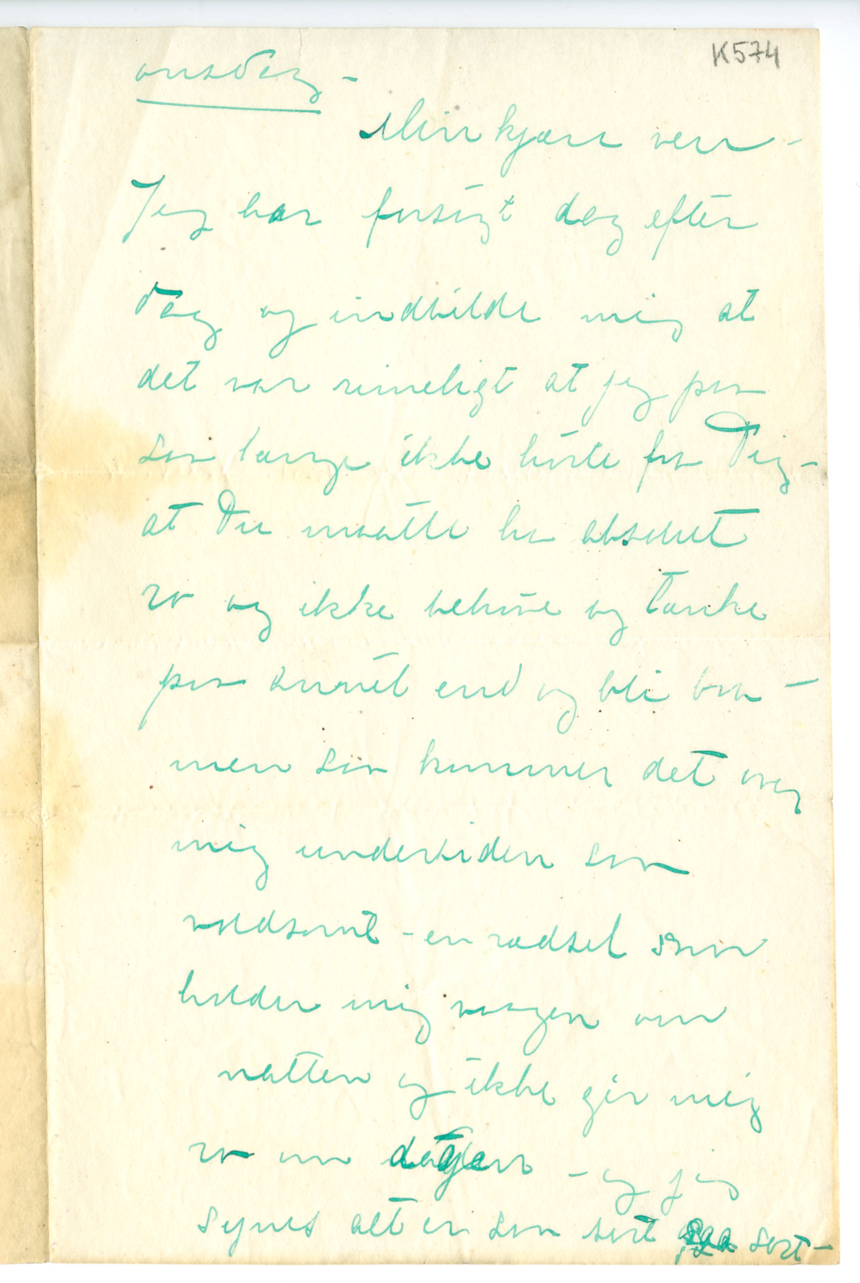 MM K 574, Munchmuseet. Ikke datert. Brev fra Tulla Larsen.