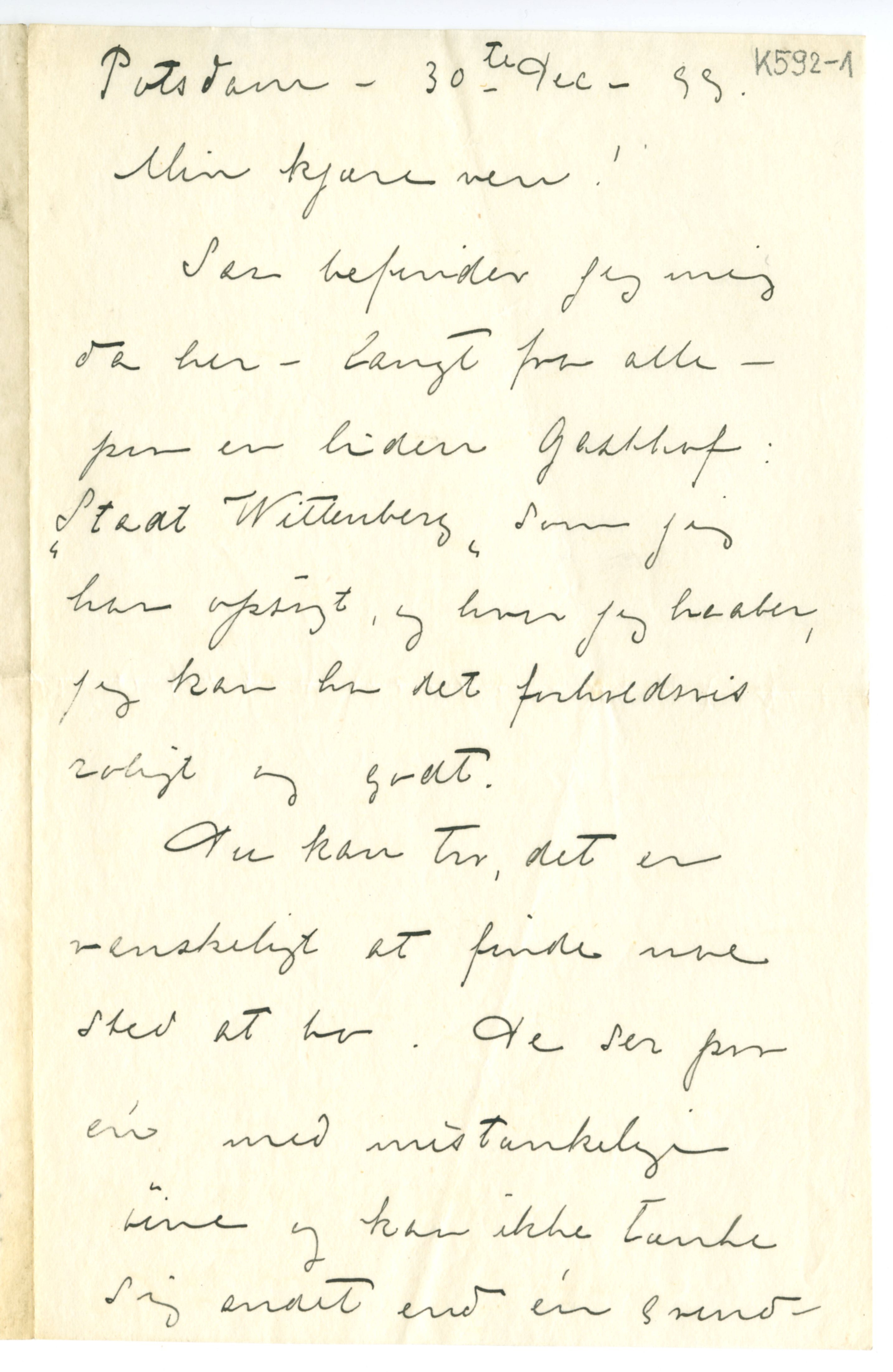 MM K 592, Munchmuseet. Datert 30.12.1899. Brev fra Tulla Larsen.
