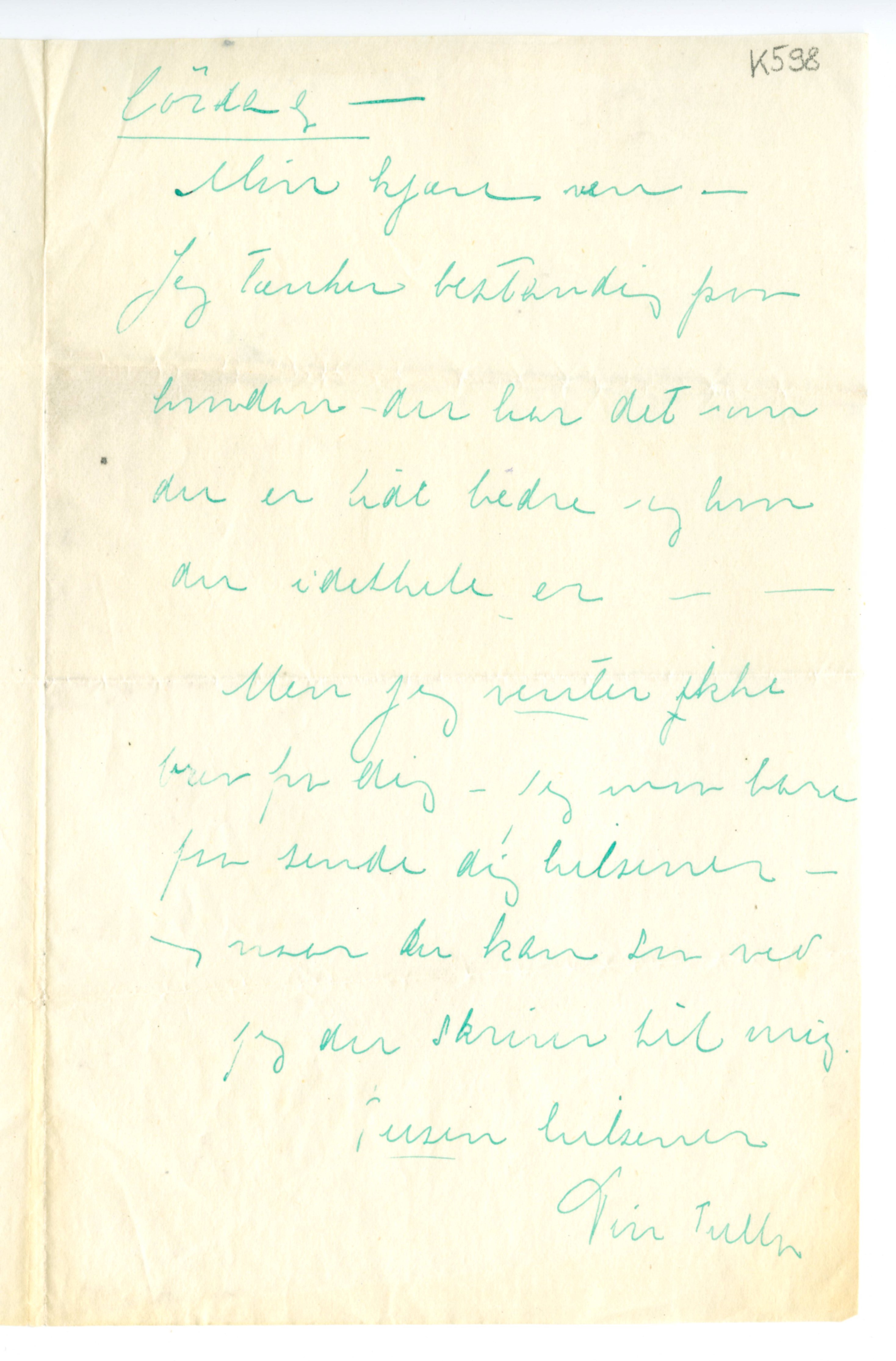MM K 598, Munchmuseet. Ikke datert. Brev fra Tulla Larsen.