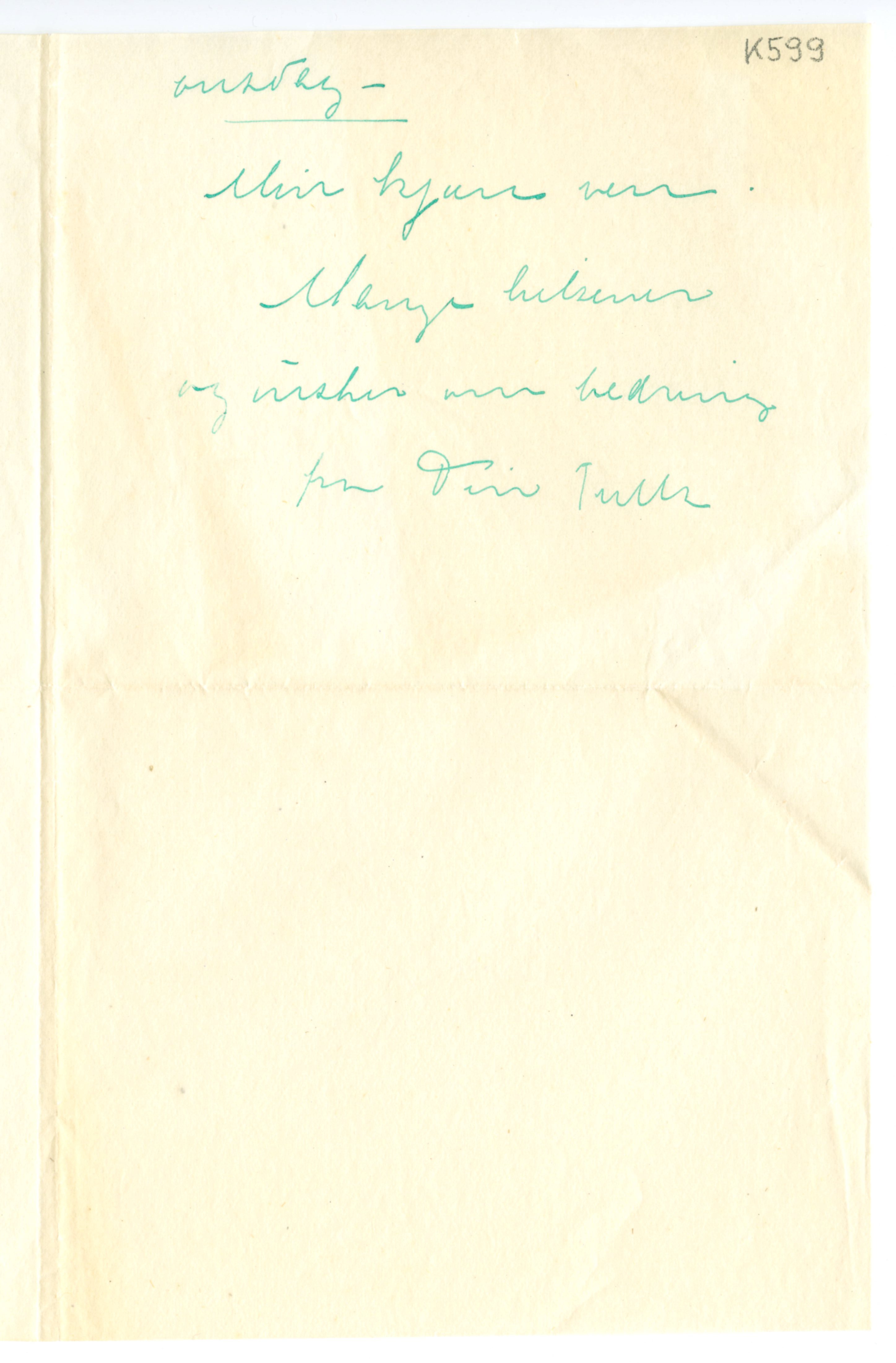 MM K 599, Munchmuseet. Ikke datert. Brev fra Tulla Larsen.