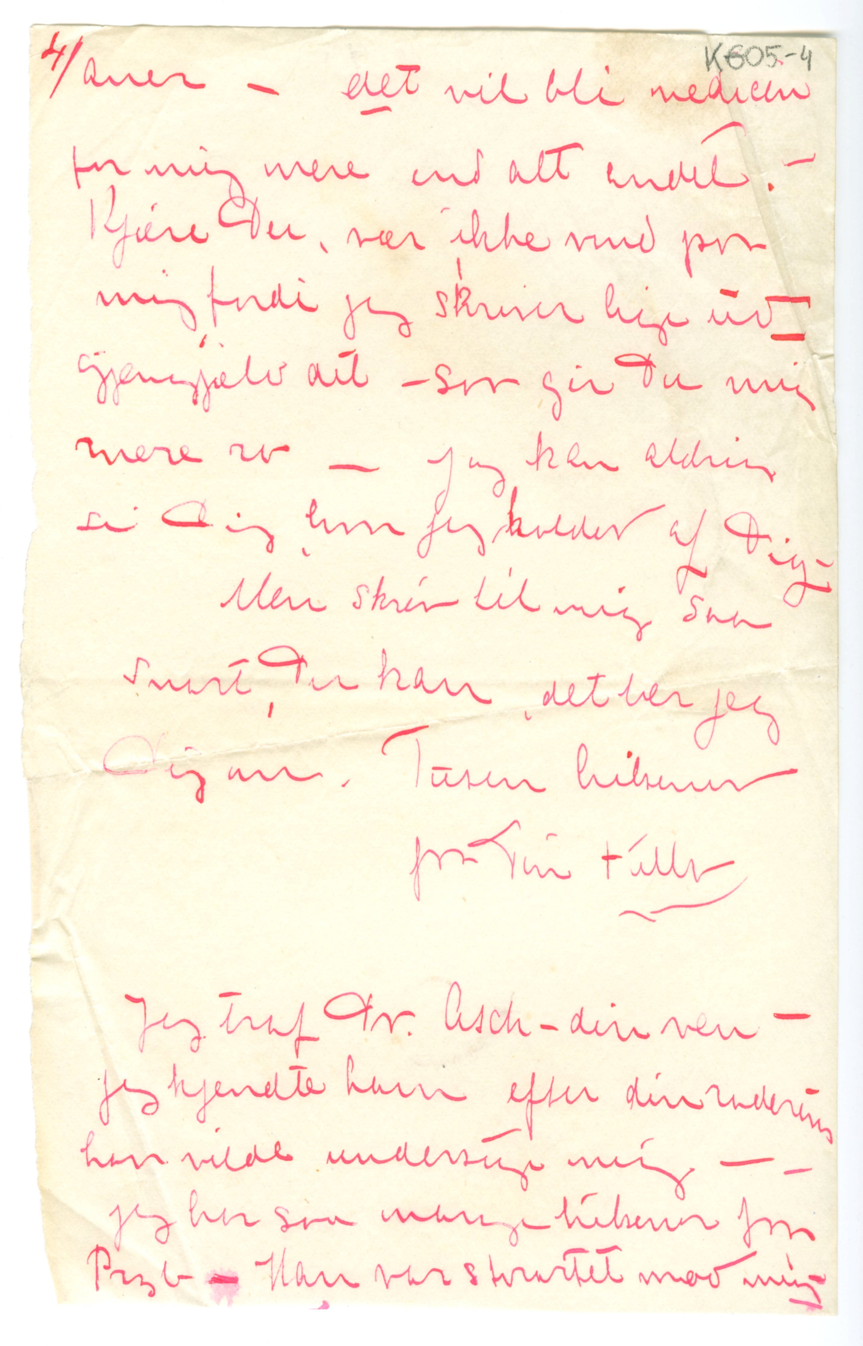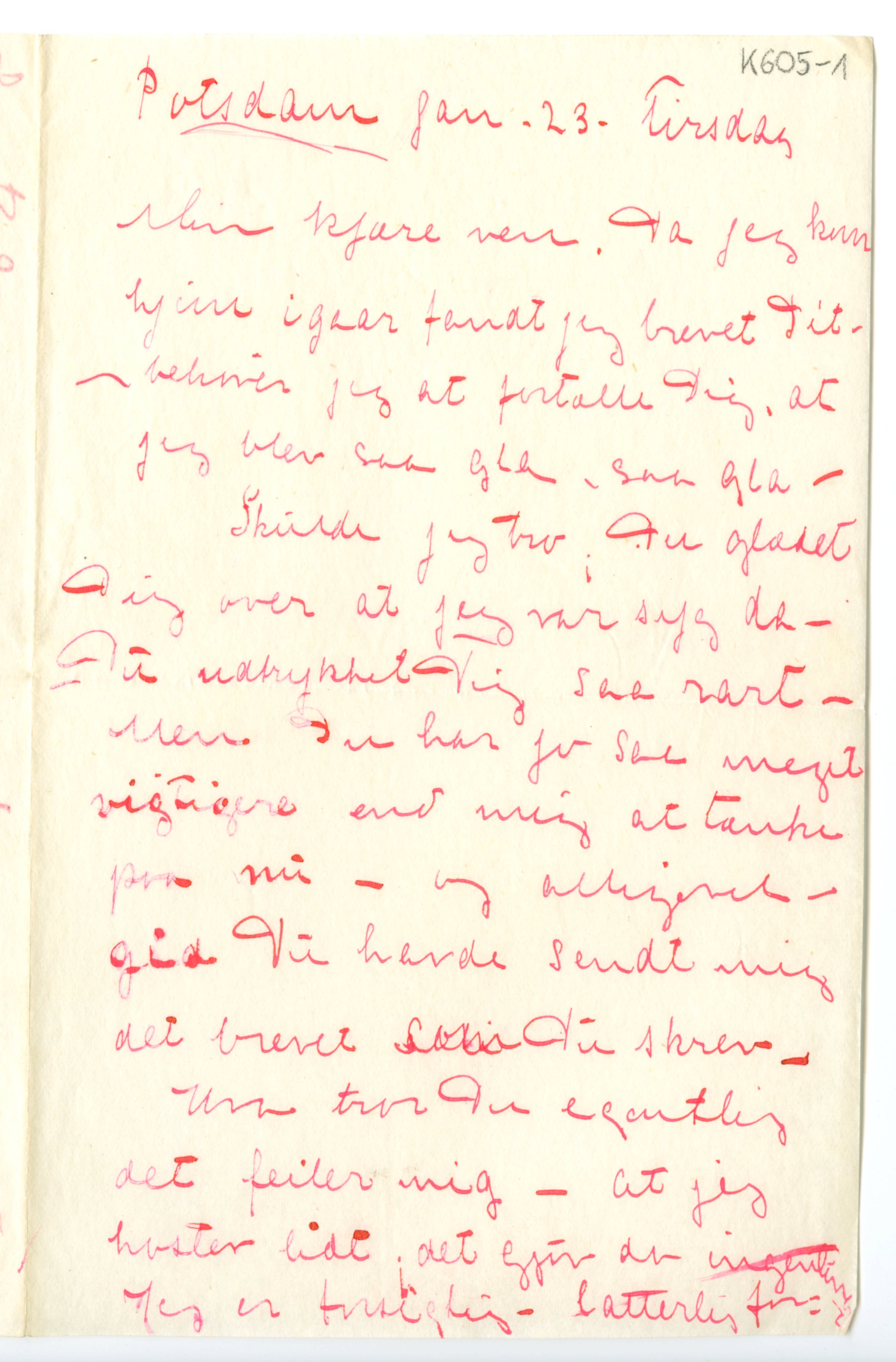 MM K 605, Munchmuseet. Datert 23.01.[1900]. Brev fra Tulla Larsen.