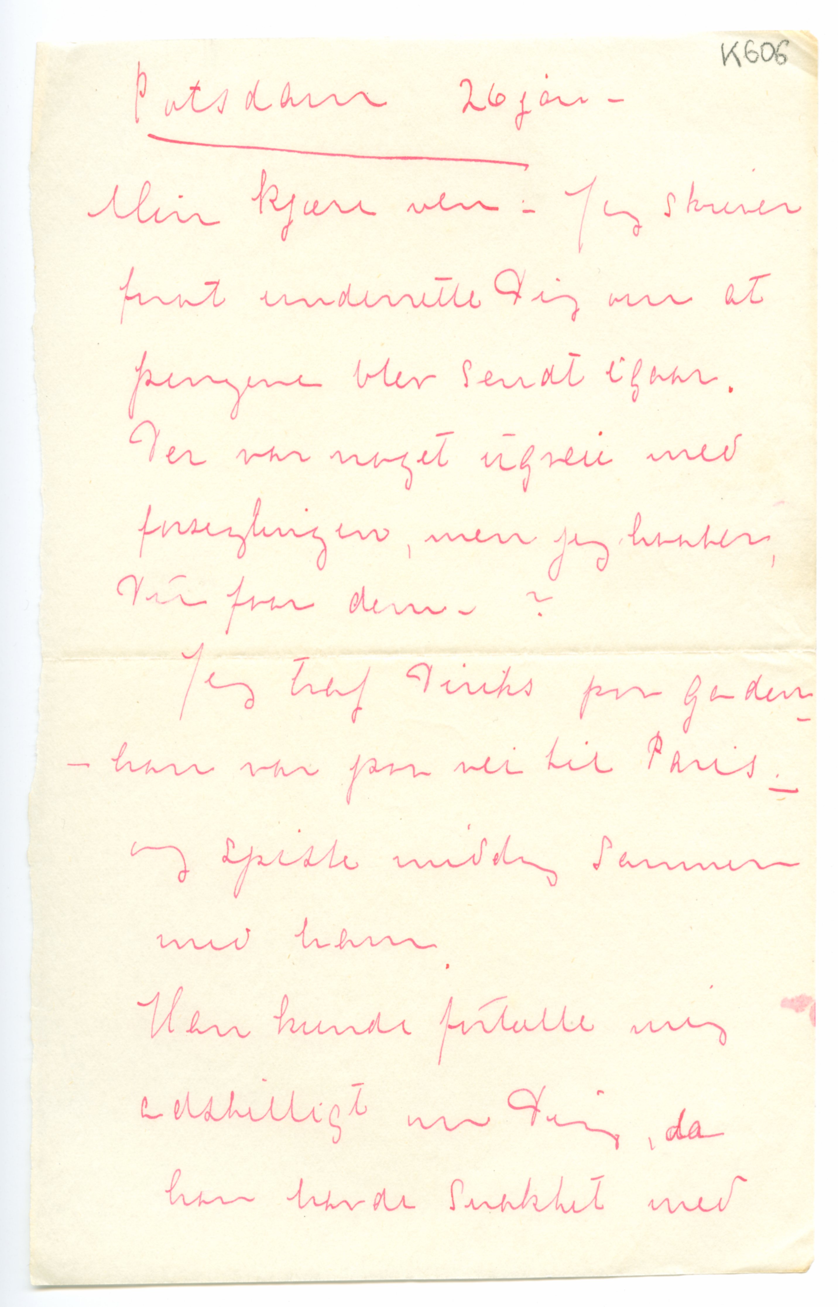 MM K 606, Munchmuseet. Datert 26.01.[1900]. Brev fra Tulla Larsen.