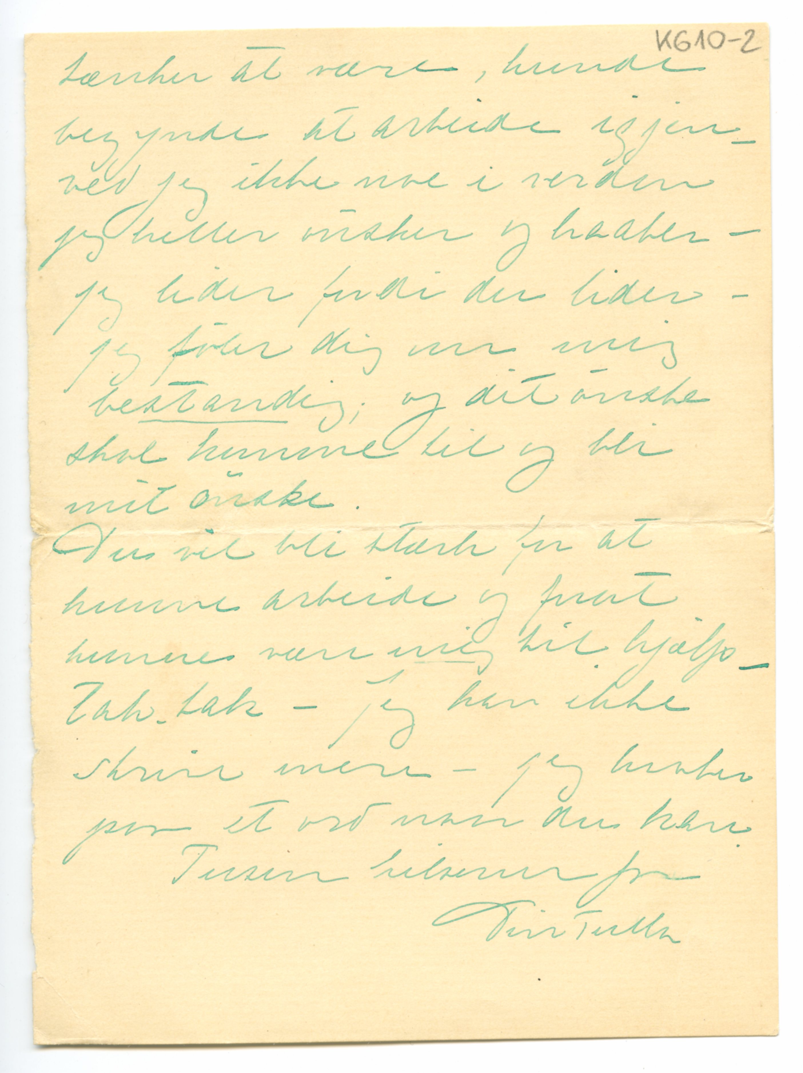 MM K 610, Munchmuseet. Ikke datert. Brev fra Tulla Larsen.