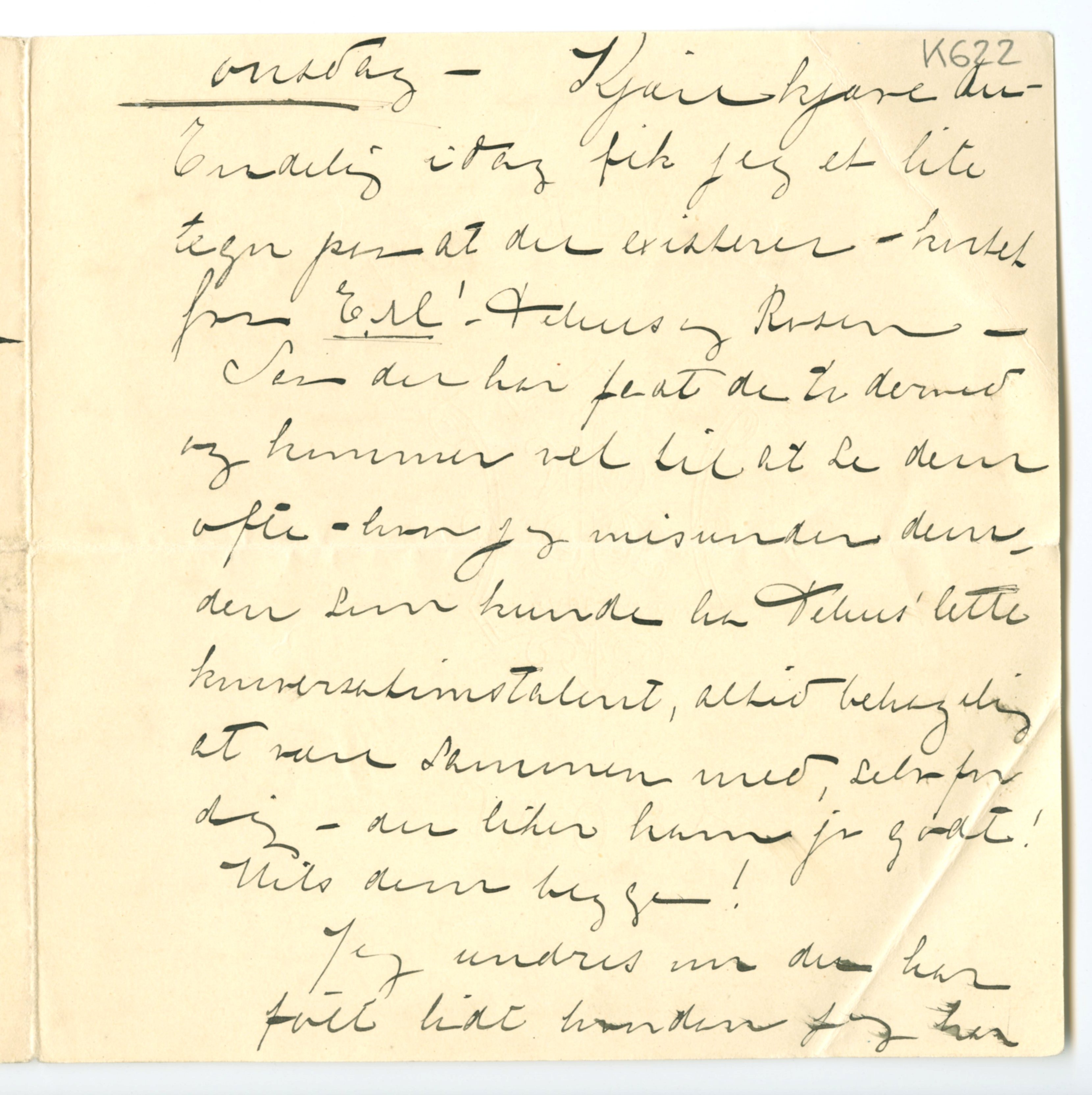 MM K 622, Munchmuseet. Ikke datert. Brev fra Tulla Larsen.