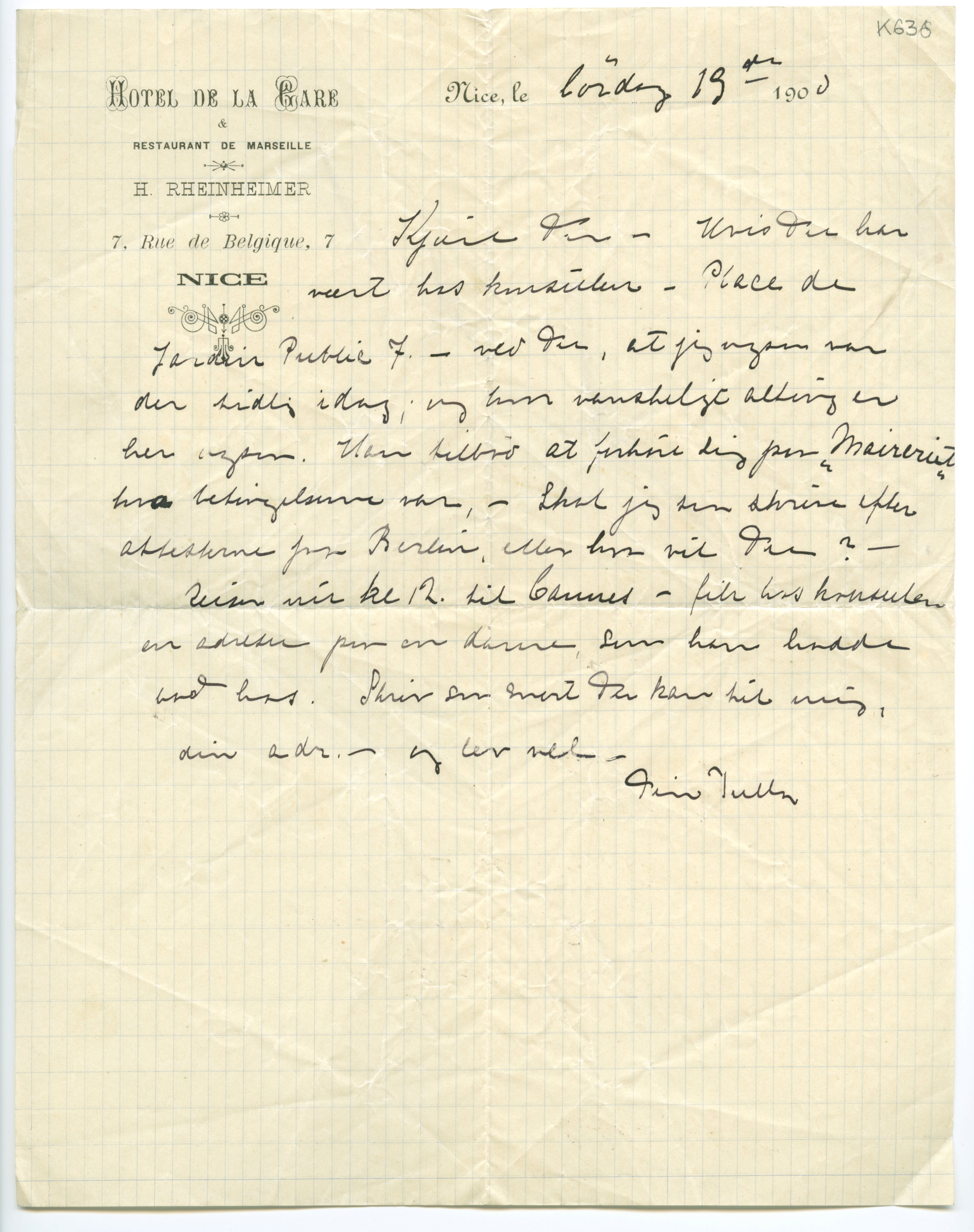 MM K 636, Munchmuseet. Datert 19.05.1900. Brev fra Tulla Larsen.