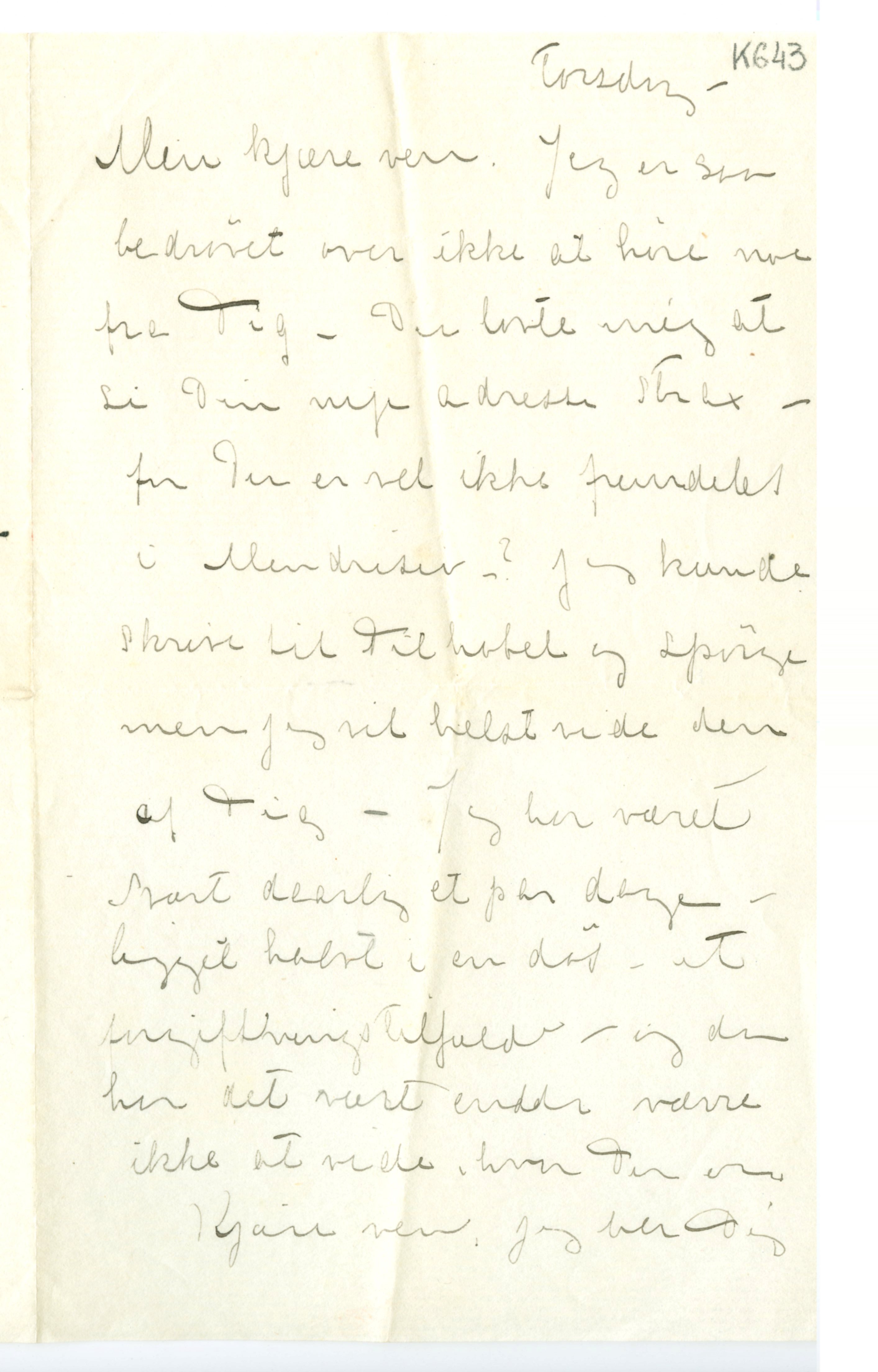 MM K 643, Munchmuseet. Ikke datert. Brev fra Tulla Larsen.