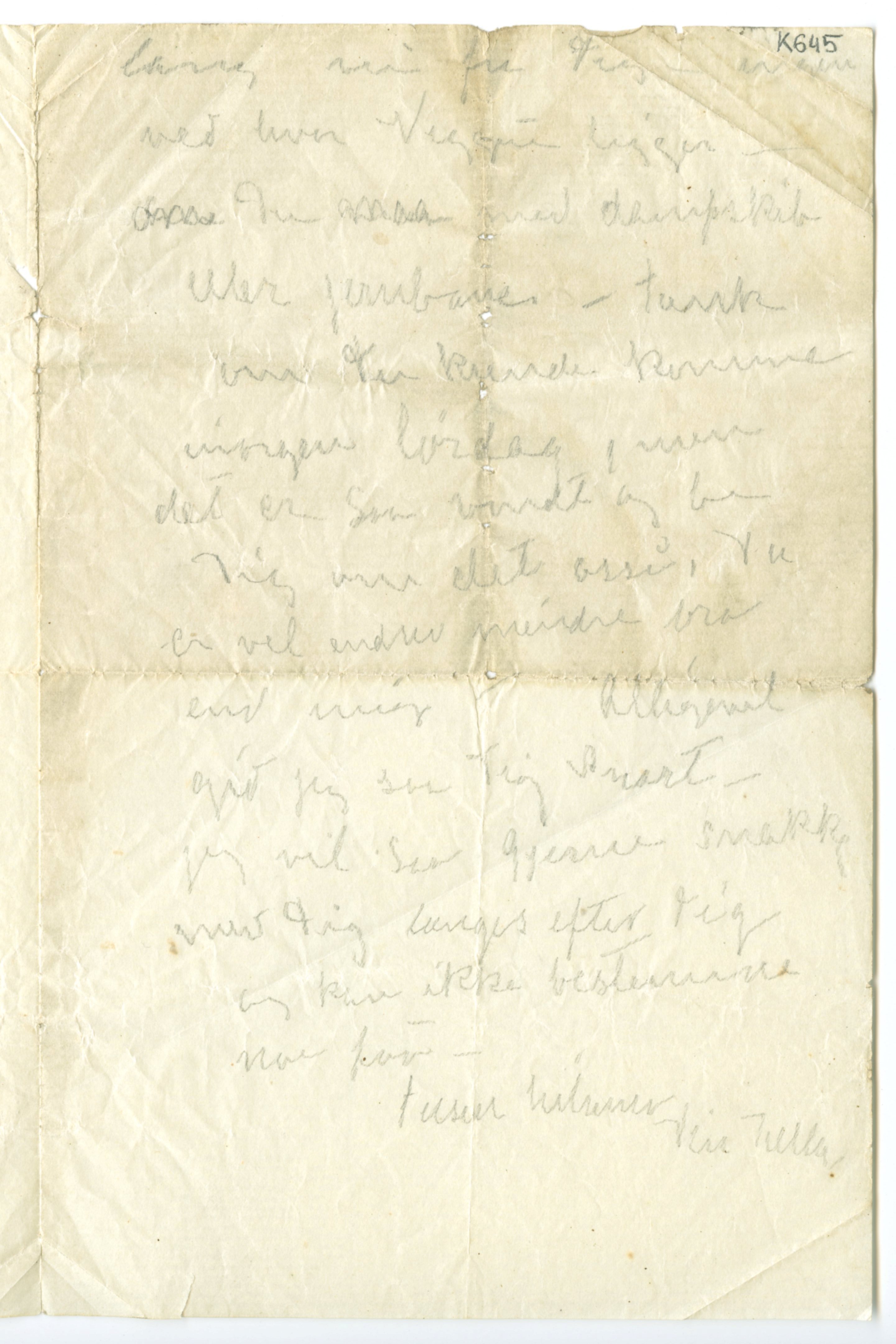 MM K 645, Munchmuseet. Ikke datert. Brev fra Tulla Larsen.