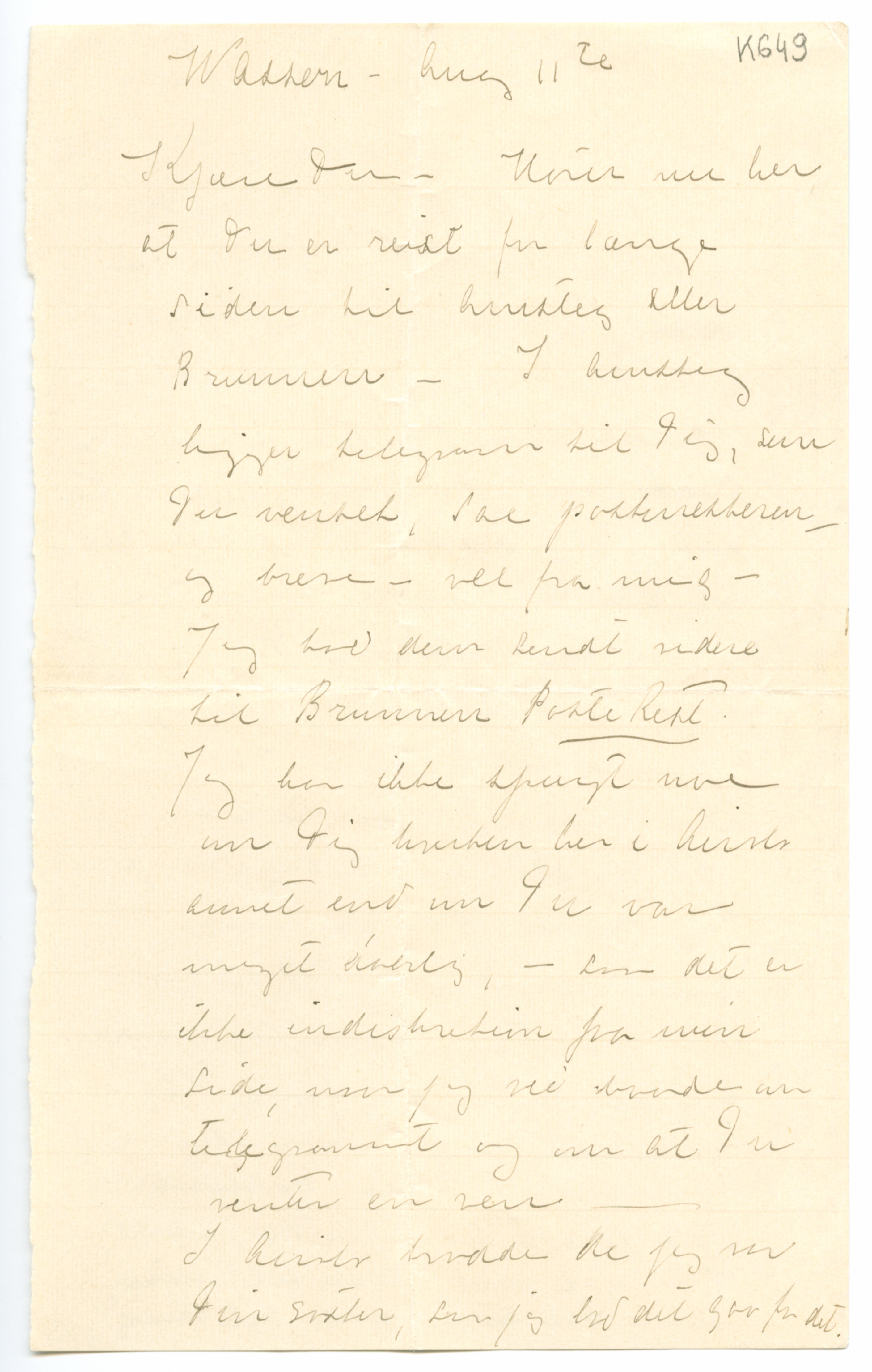 MM K 649, Munchmuseet. Datert 11.08.[1???]. Brev fra Tulla Larsen.