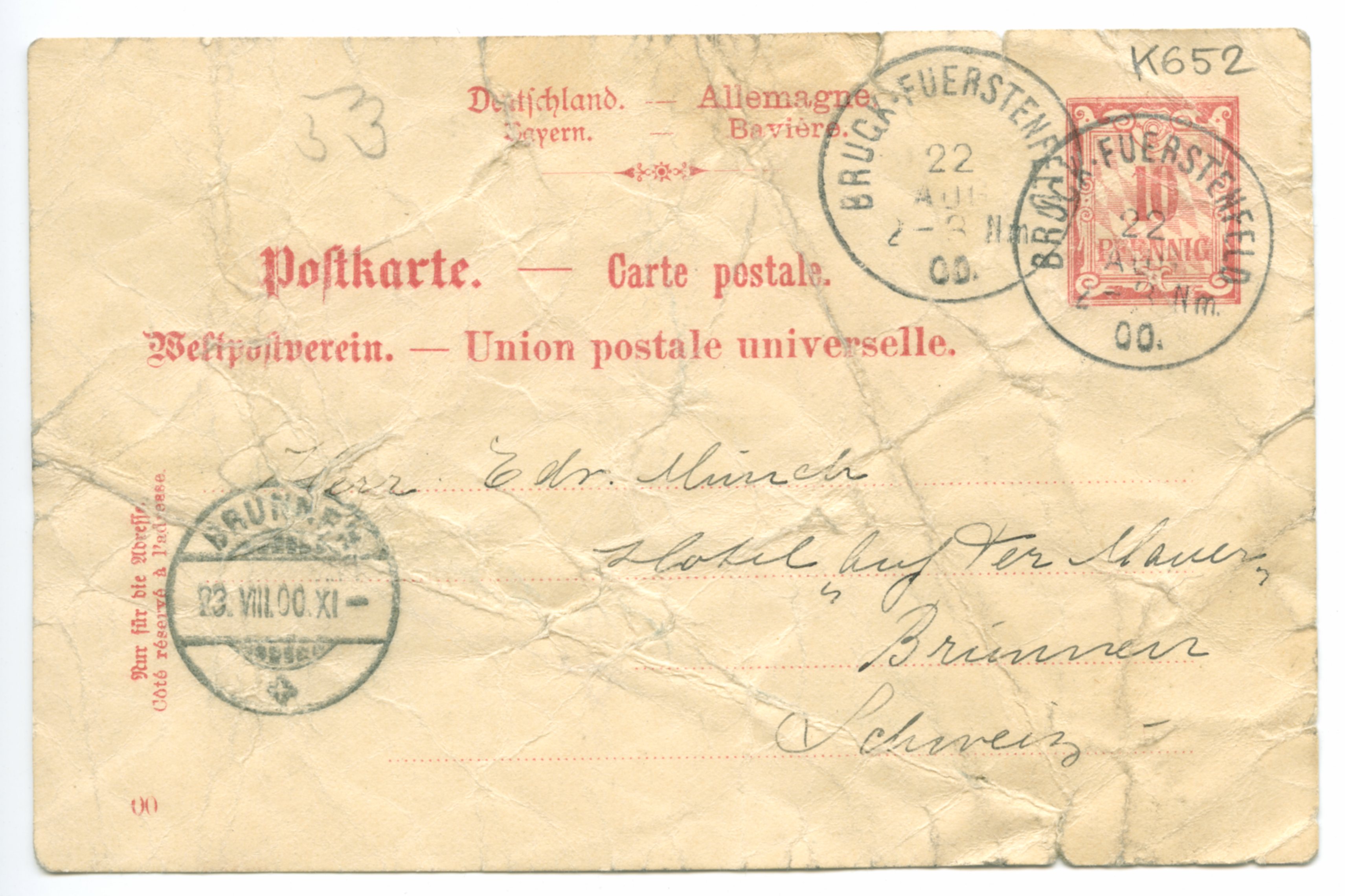 MM K 652, Munchmuseet. Datert 22.08.1900. Brev fra Tulla Larsen.