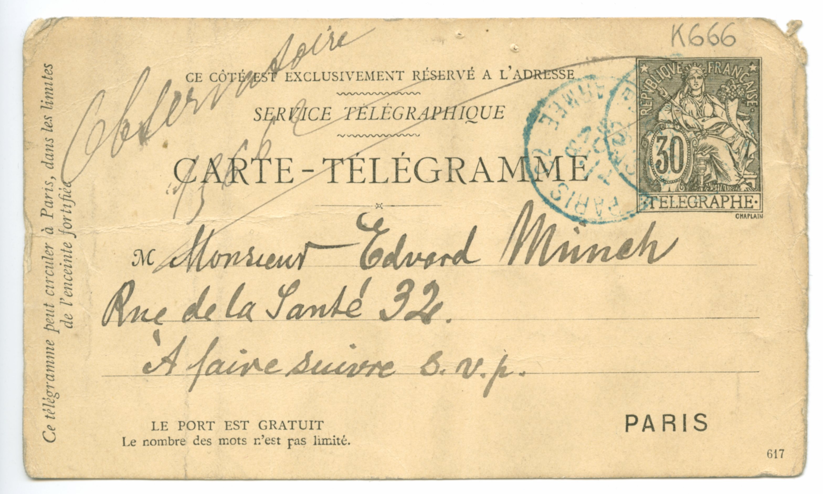 MM K 666, Munchmuseet. Datert 18.11.1896. Brev fra Jonas Lie.