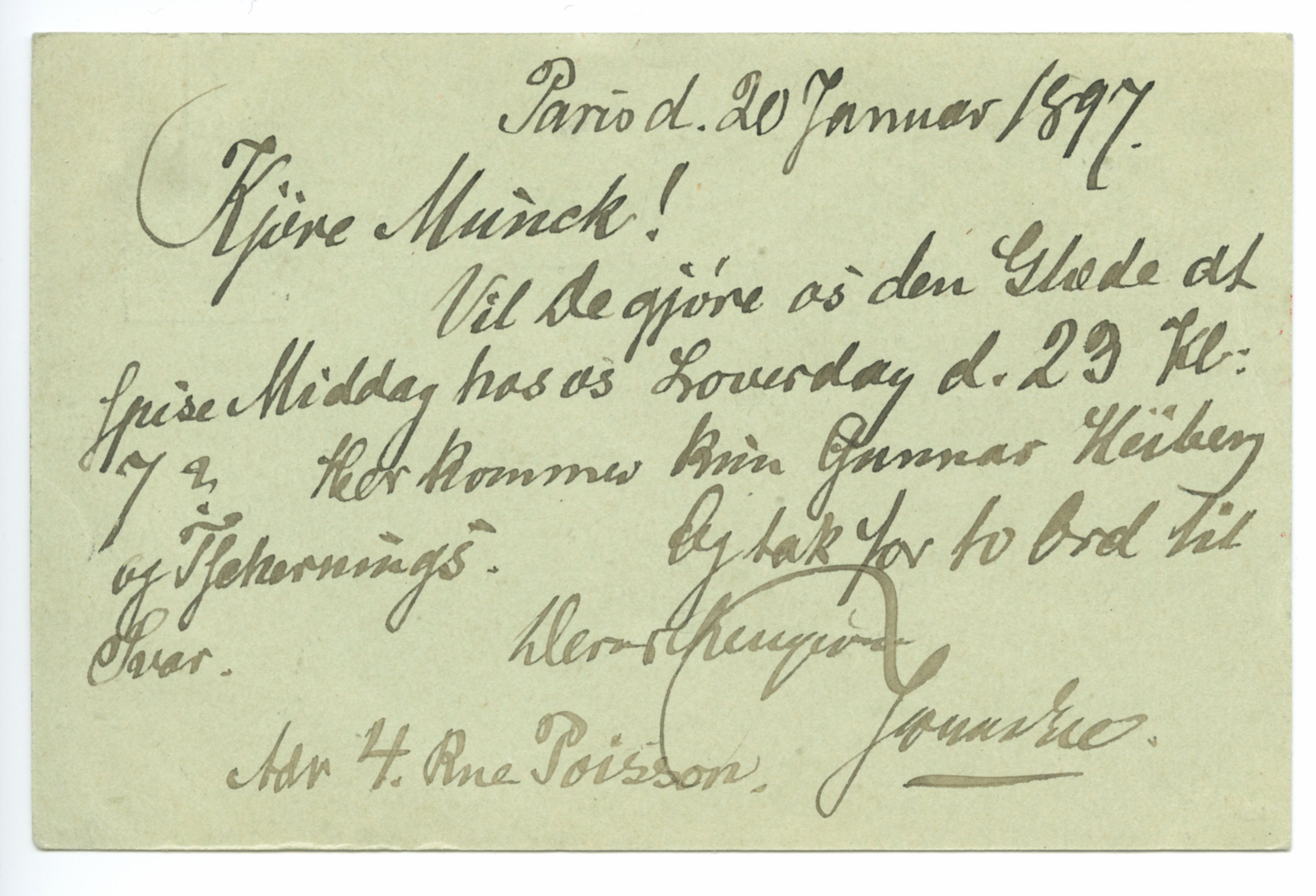 MM K 667, Munchmuseet. Datert 20.01.1897. Brev fra Jonas Lie.