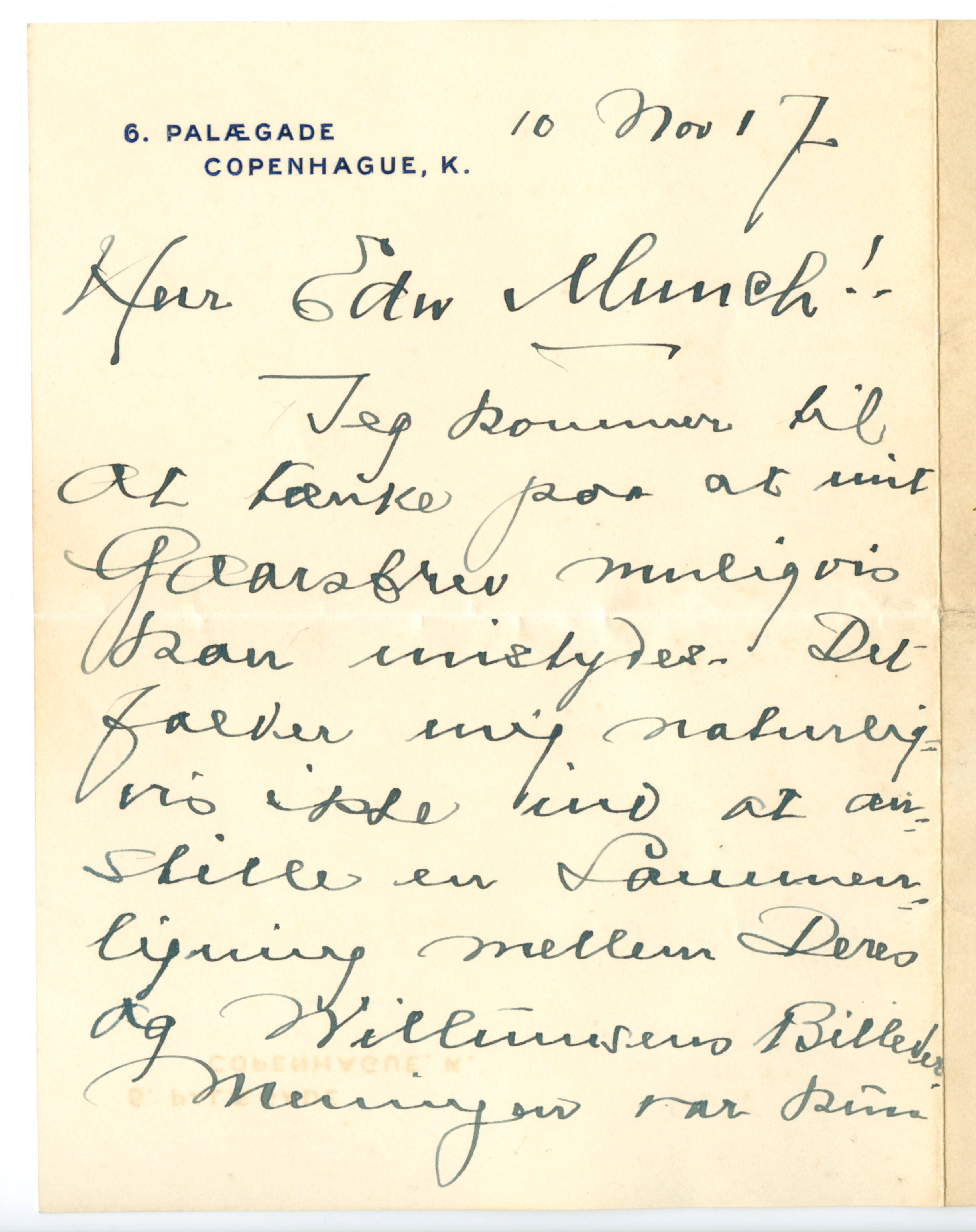 MM K 670, Munchmuseet. Datert 10.11.1917. Brev fra Henrik Lund.