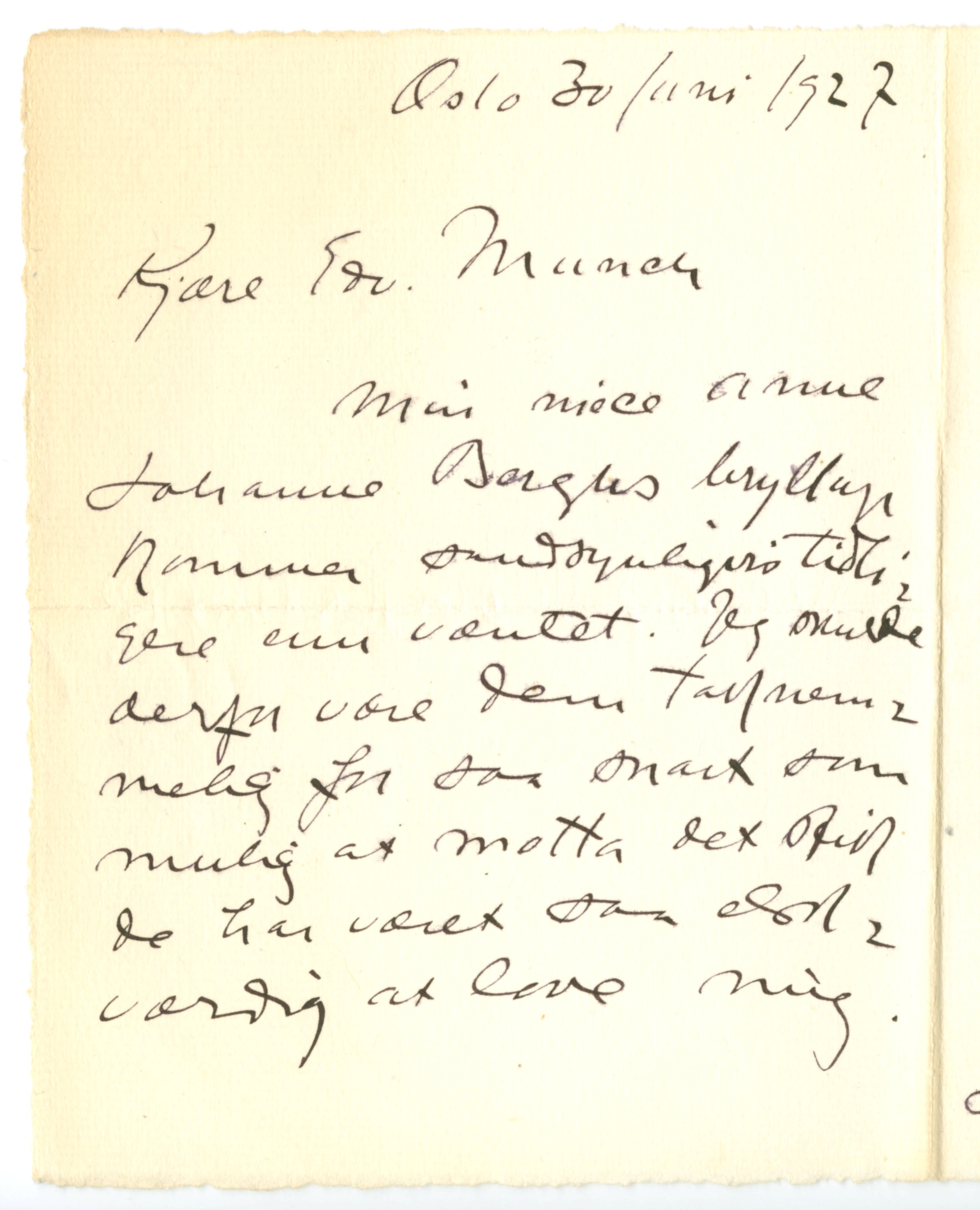 MM K 705, Munchmuseet. Datert 30.06.1927. Brev fra Ludvig Meyer.