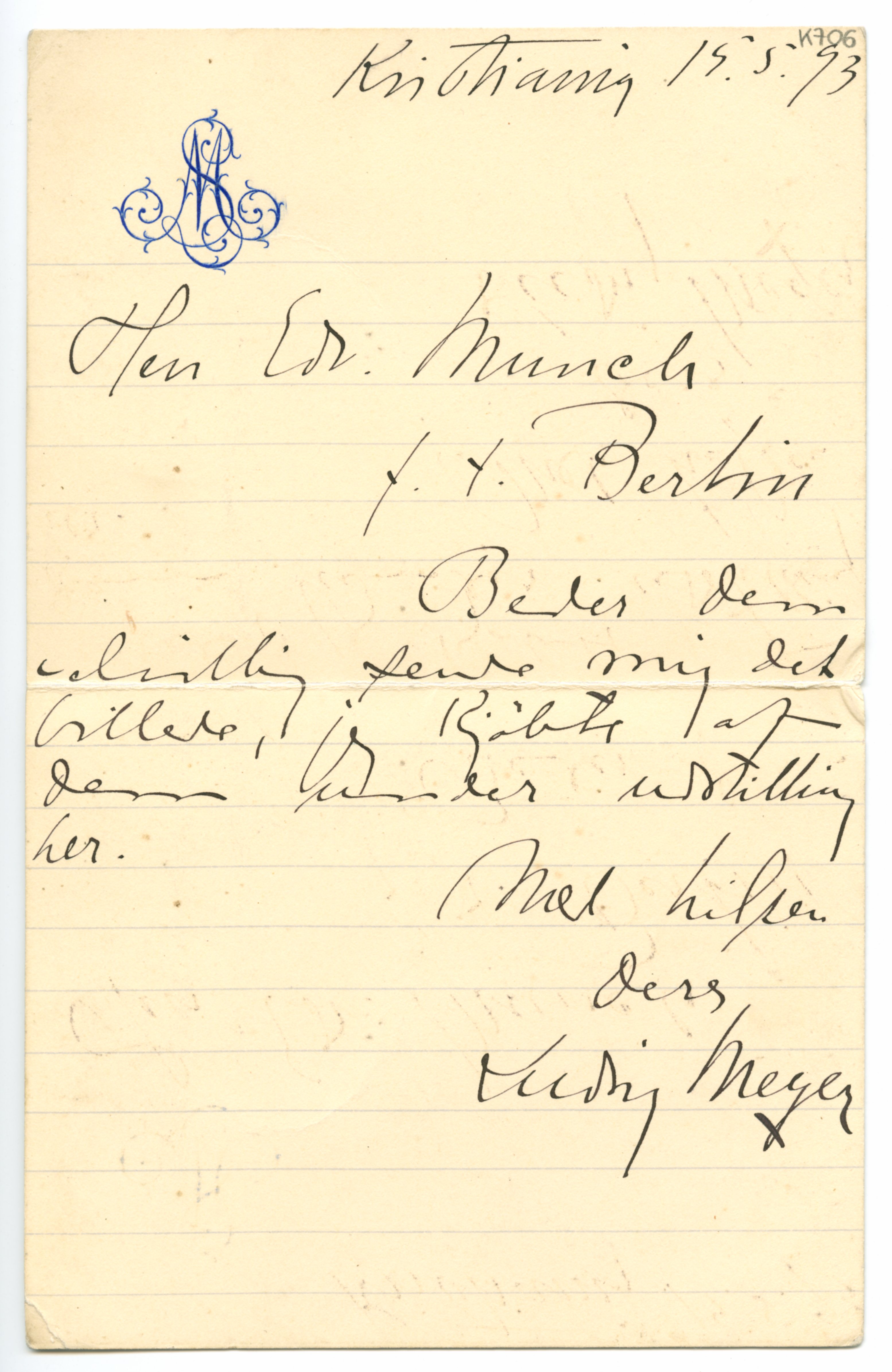 MM K 706, Munchmuseet. Datert 19.05.1893. Brev fra Ludvig Meyer.