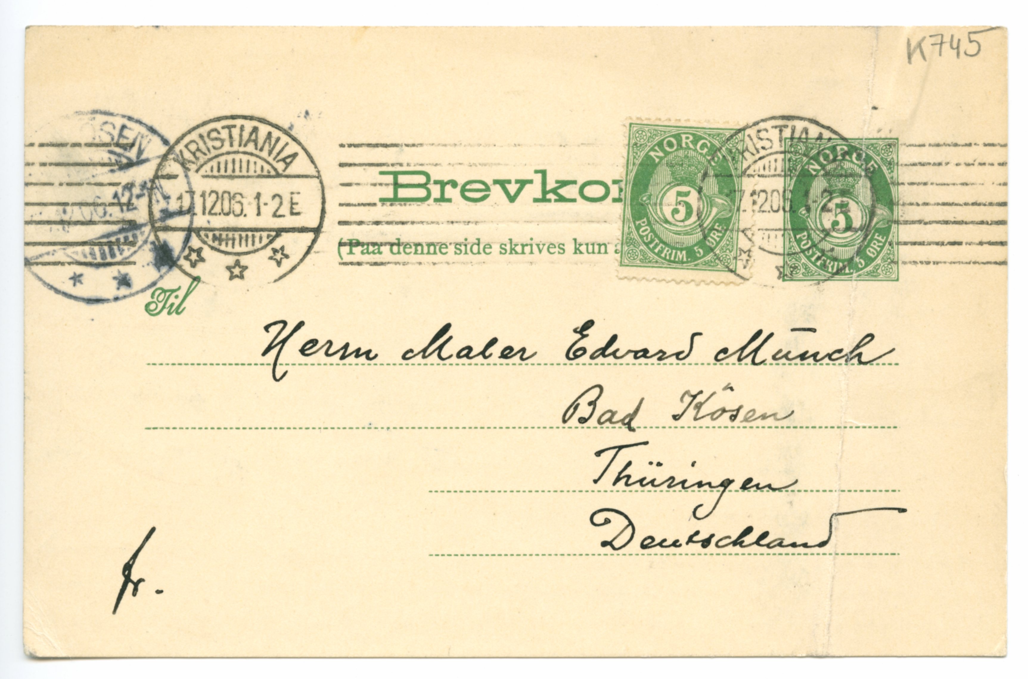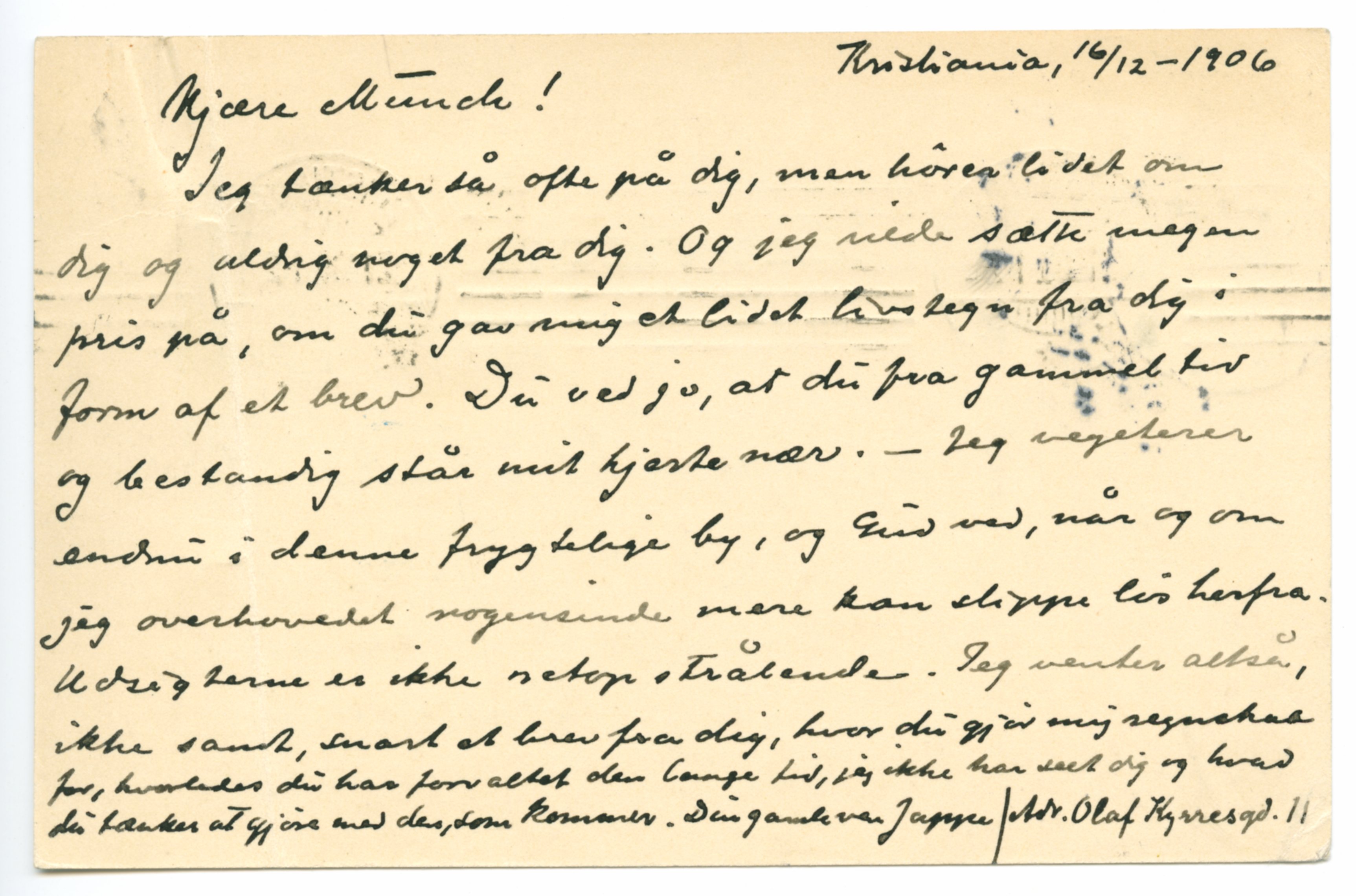 MM K 745, Munchmuseet. Datert 16.12.1906. Brev fra Jappe Nilssen.