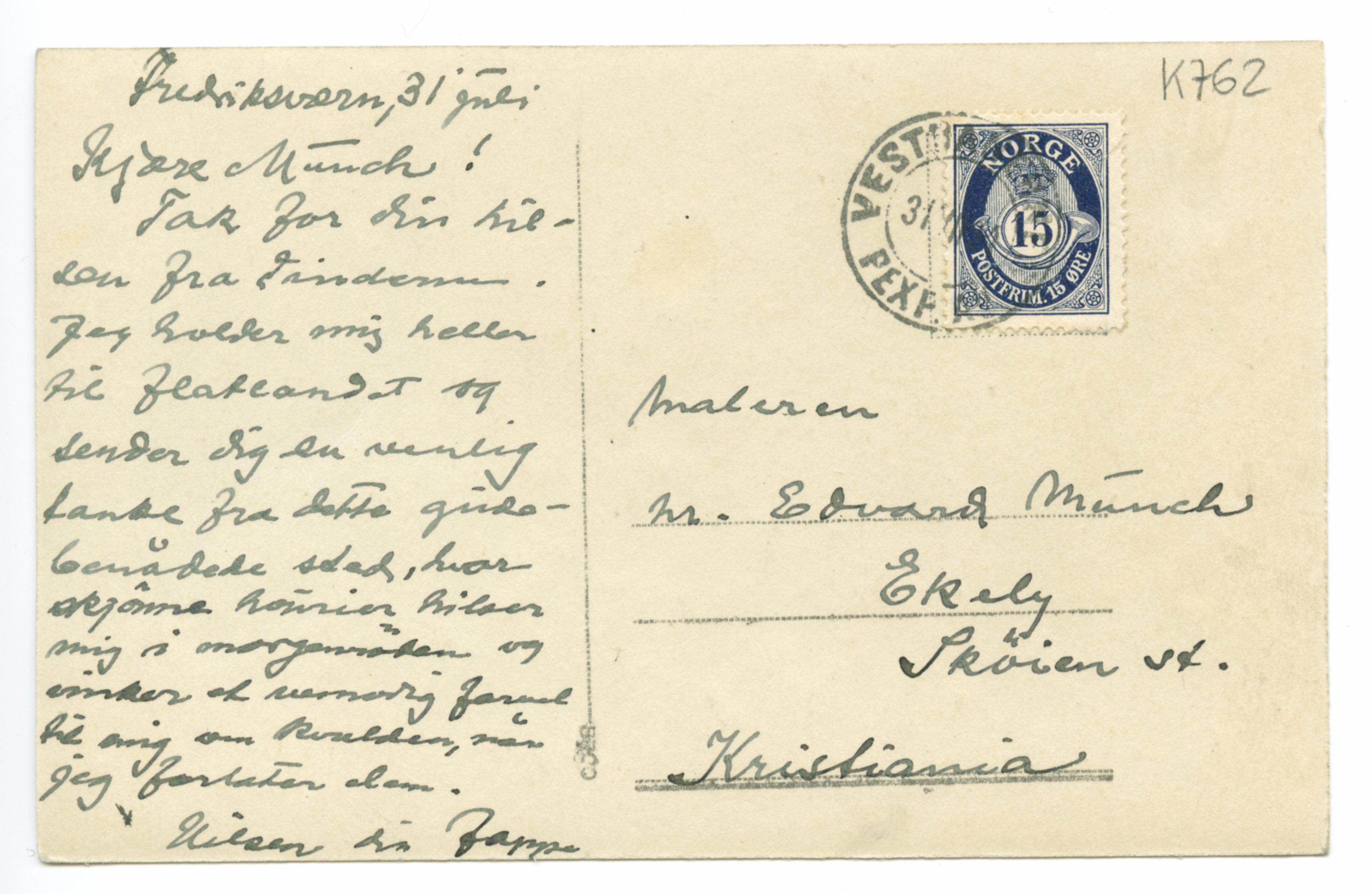 MM K 762, Munchmuseet. Datert 31.07.1921. Brev fra Jappe Nilssen.
