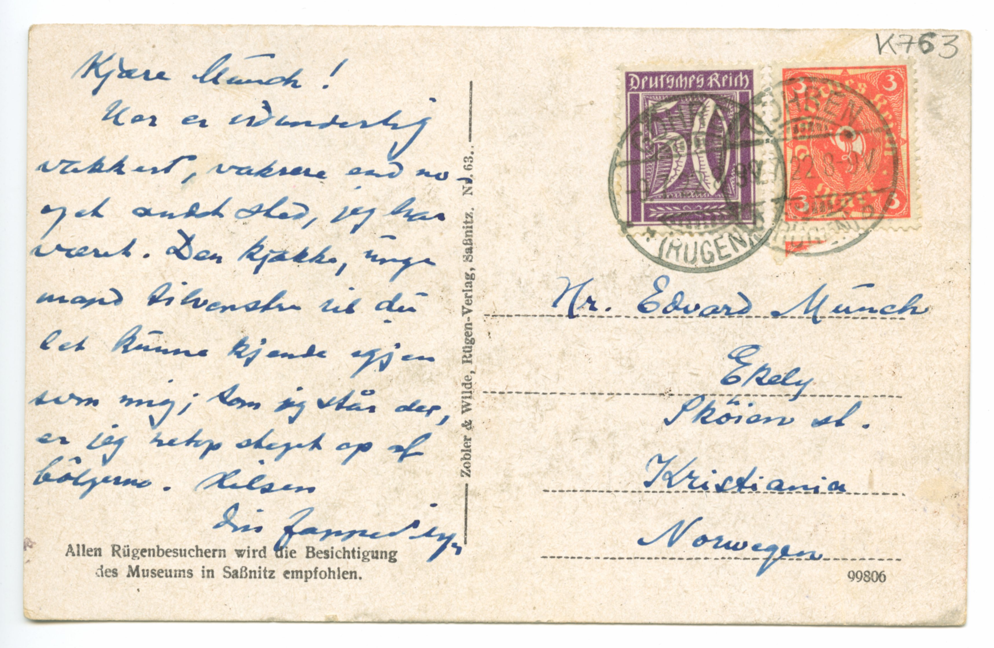 MM K 763, Munchmuseet. Datert 09.07.1922. Brev fra Jappe Nilssen.