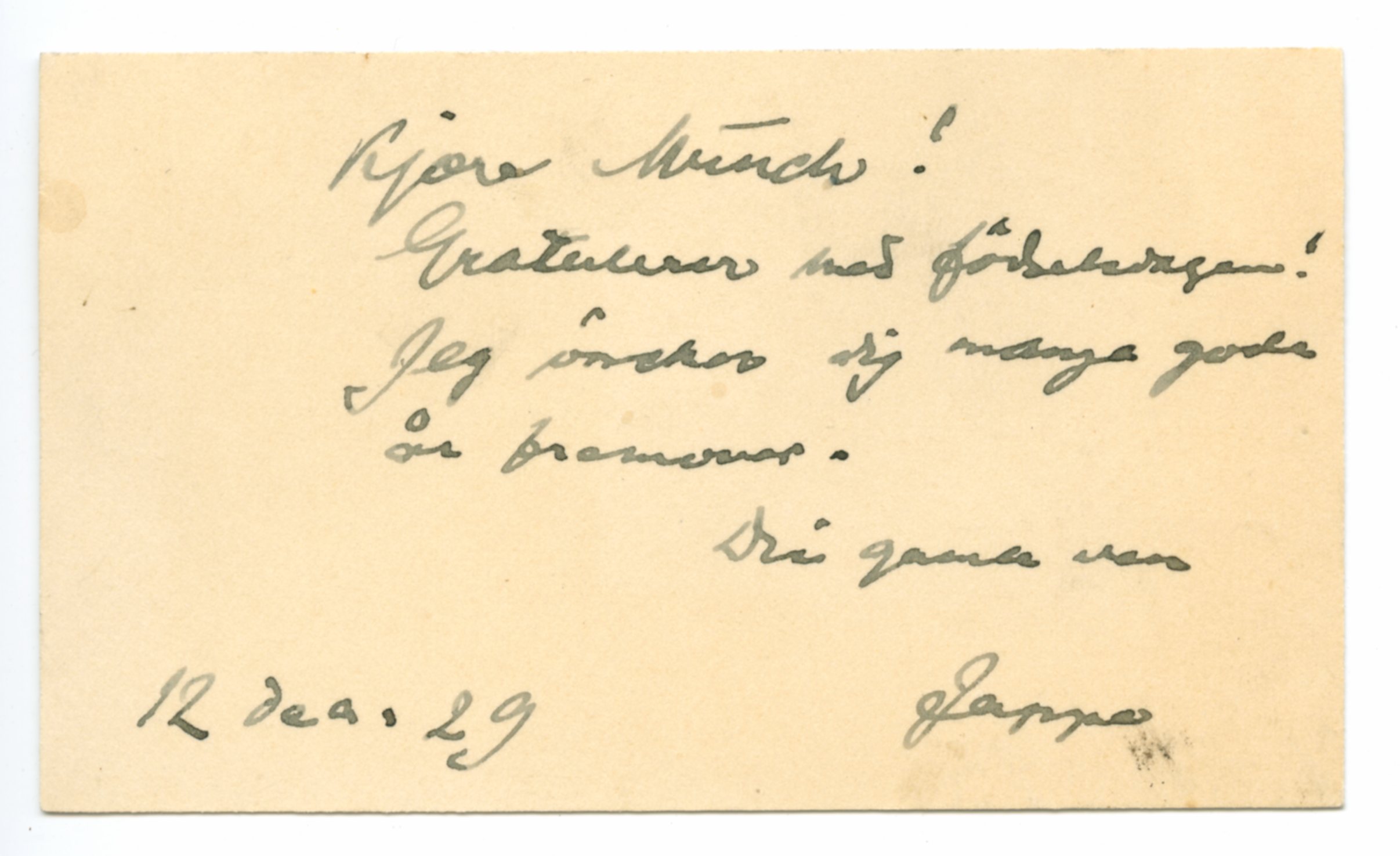 MM K 768, Munchmuseet. Datert 12.12.1929. Brev fra Jappe Nilssen.