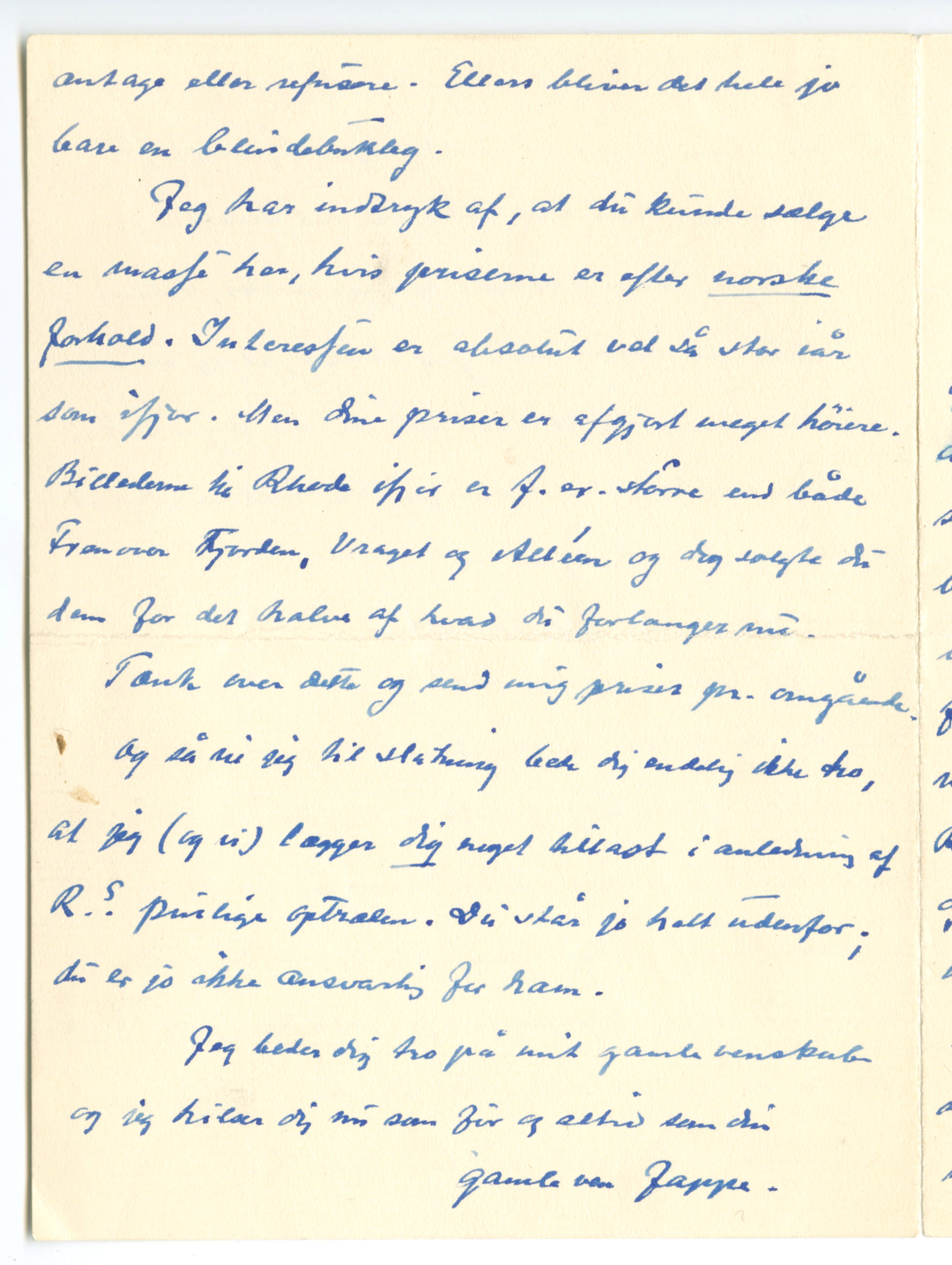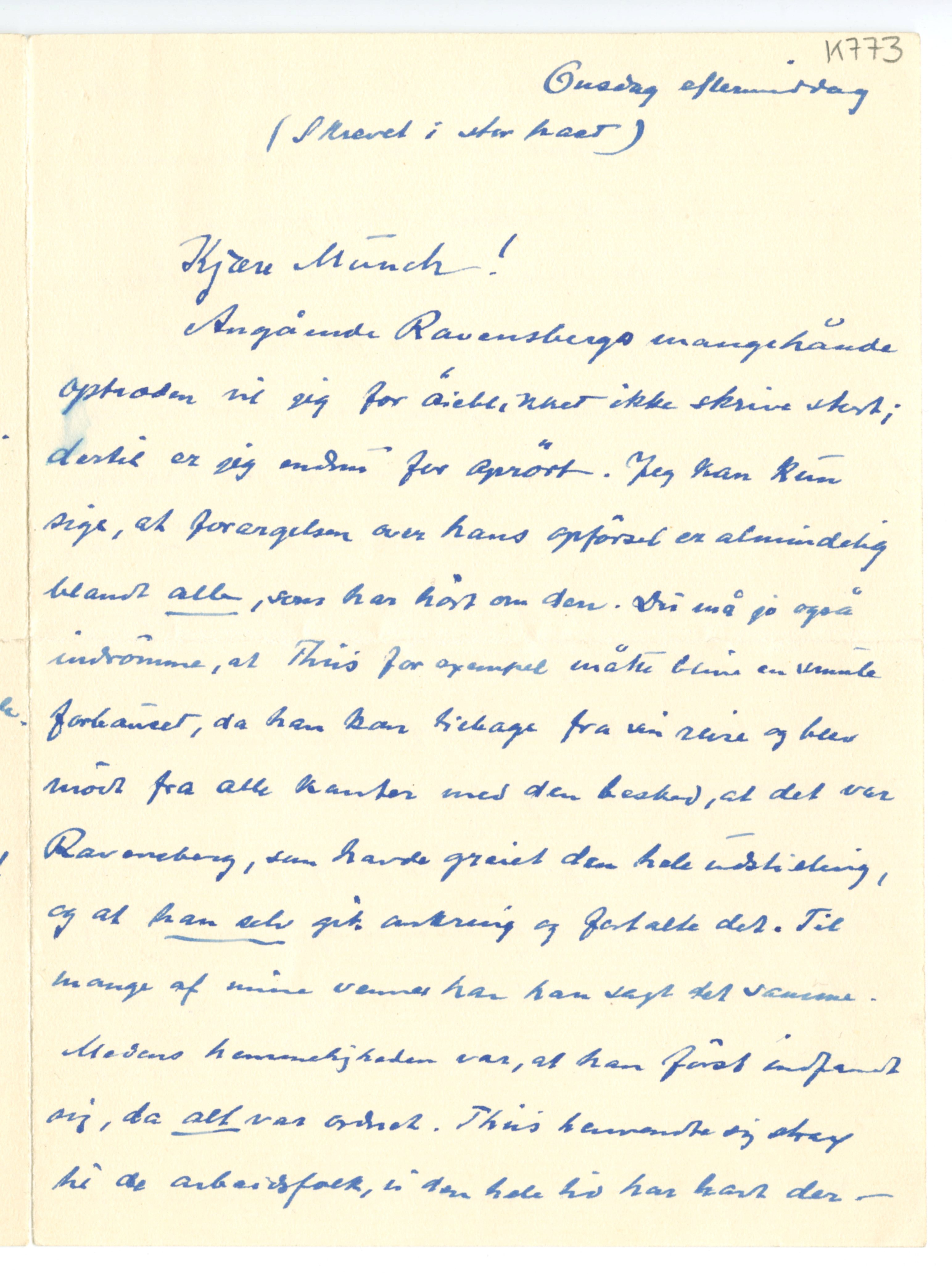 MM K 773, Munchmuseet. Datert 09.03.1910. Brev fra Jappe Nilssen.