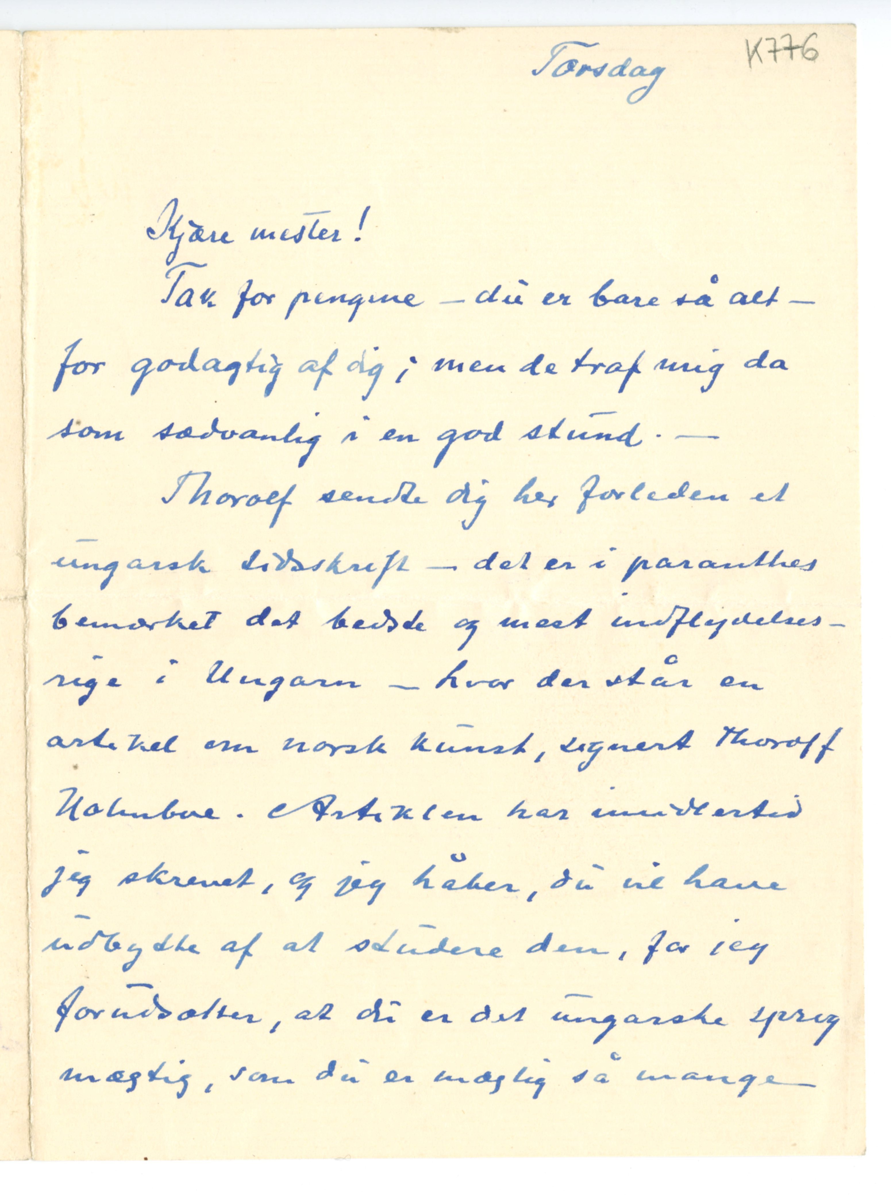 MM K 776, Munchmuseet. Datert [??].[??].1910. Brev fra Jappe Nilssen.