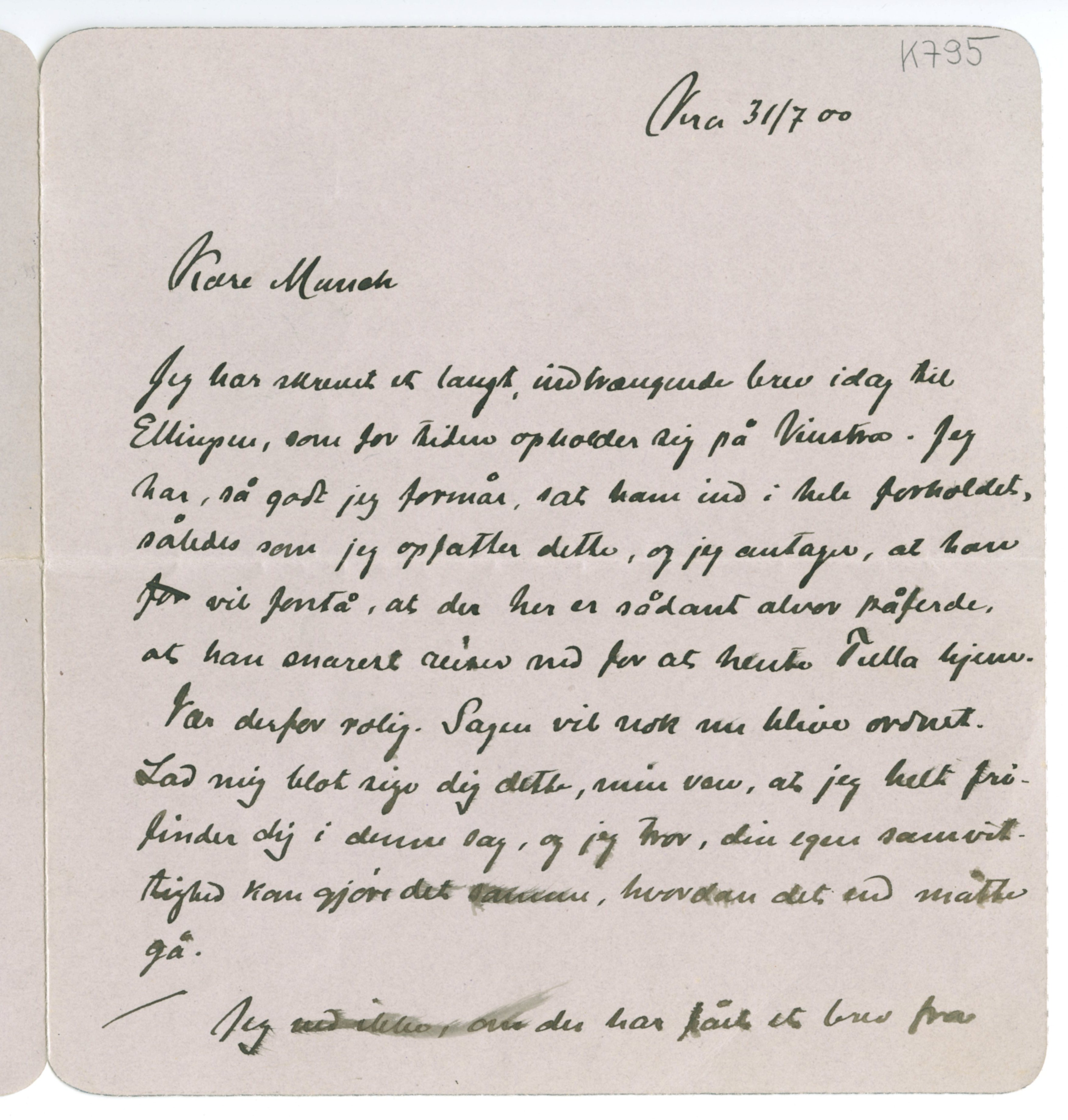 MM K 795, Munchmuseet. Datert 31.07.1900. Brev fra Harald Nørregaard.
