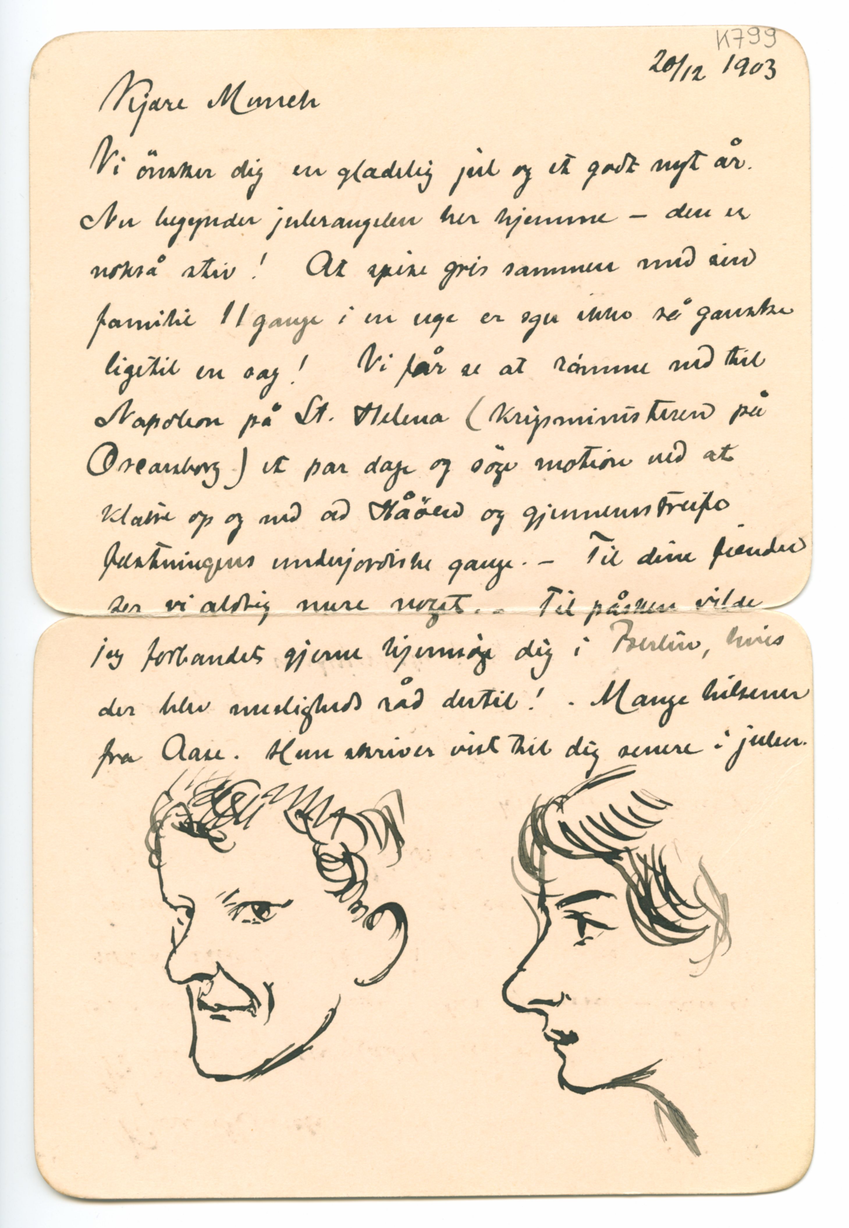 MM K 799, Munchmuseet. Datert 20.12.1903. Brev fra Harald Nørregaard, Aase Nørregaard.