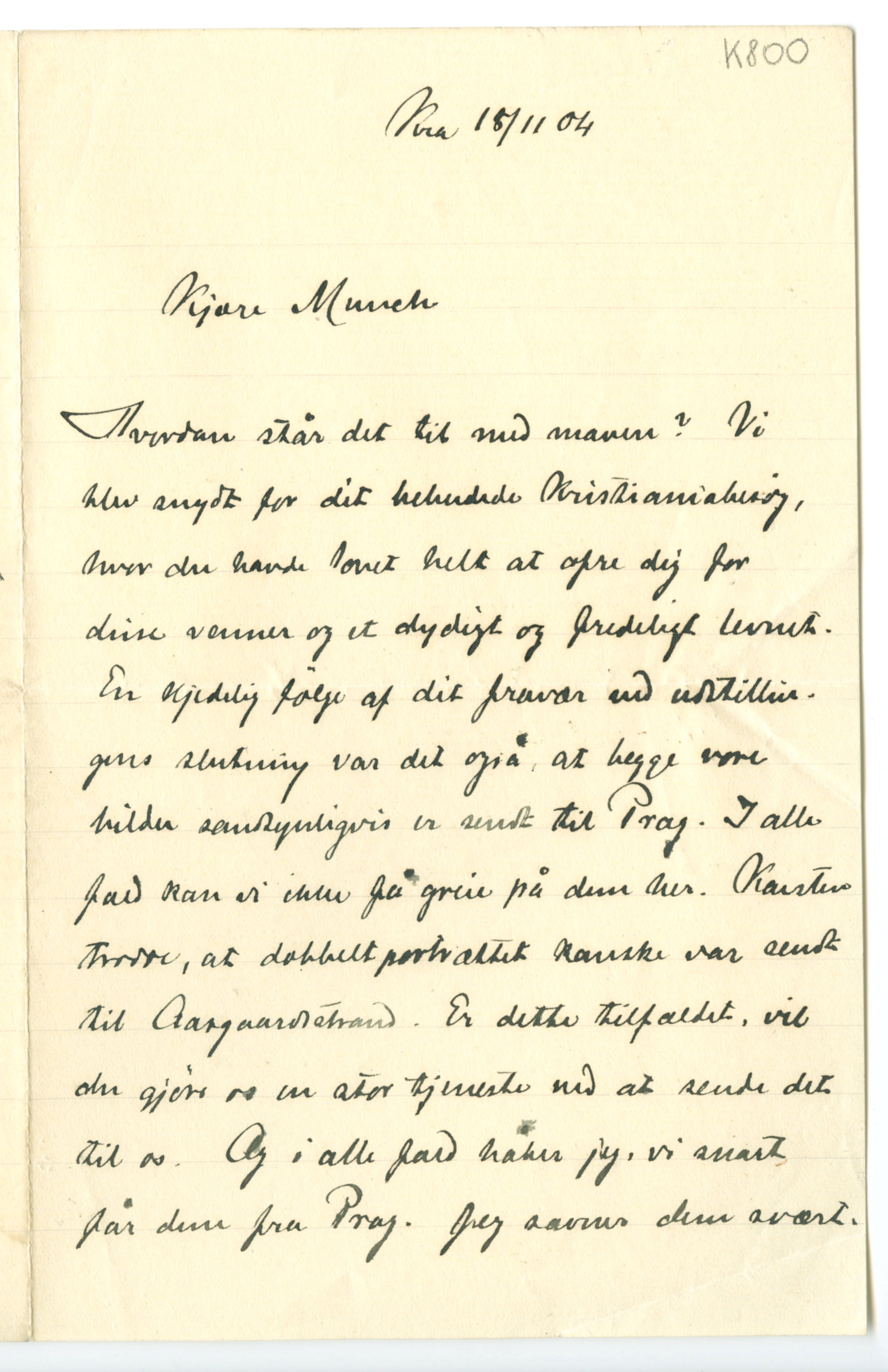 MM K 800, Munchmuseet. Datert 18.11.1904. Brev fra Harald Nørregaard.