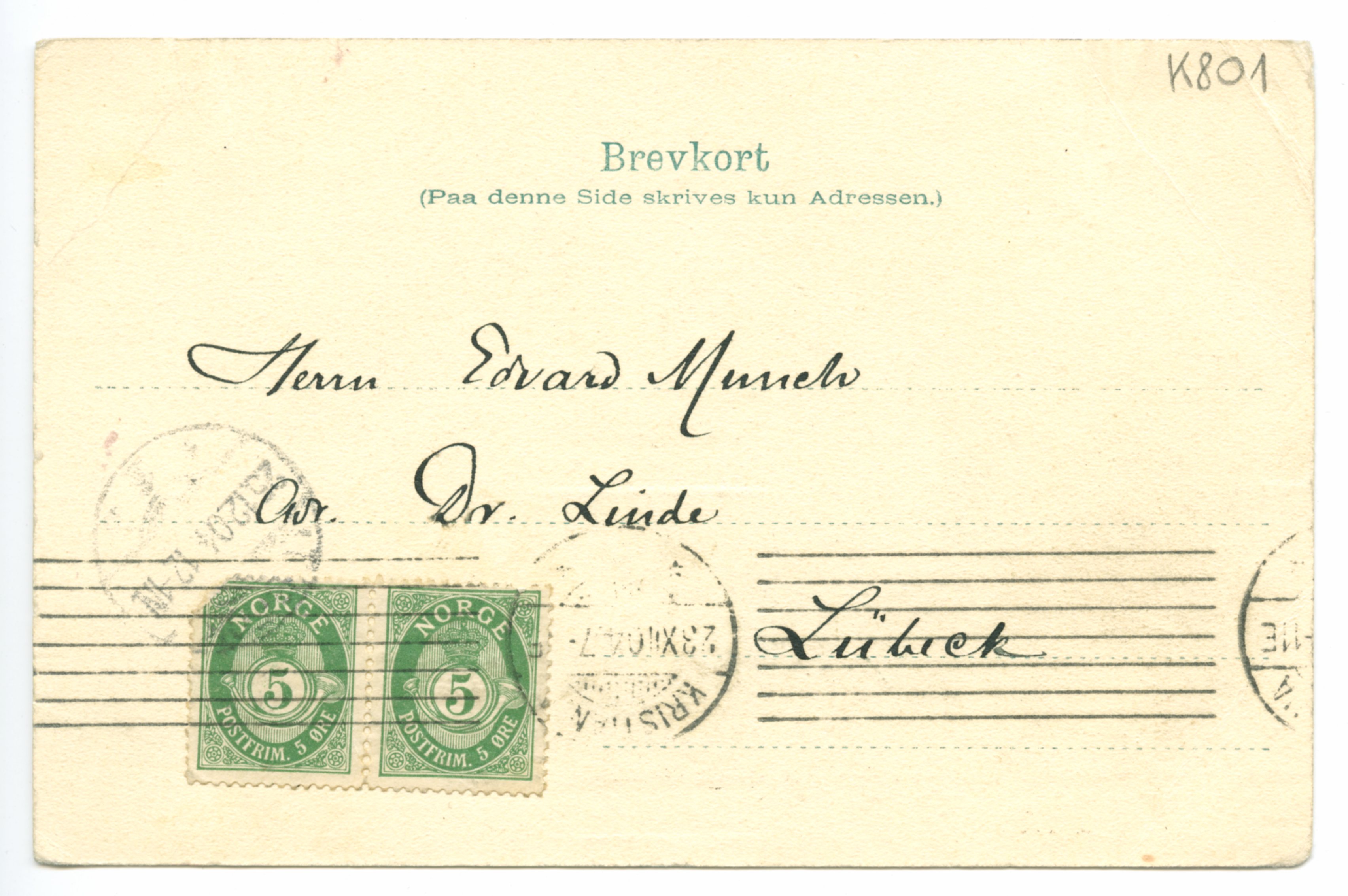 MM K 801, Munchmuseet. Datert 23.12.1904. Brev fra Harald Nørregaard, Aase Nørregaard.
