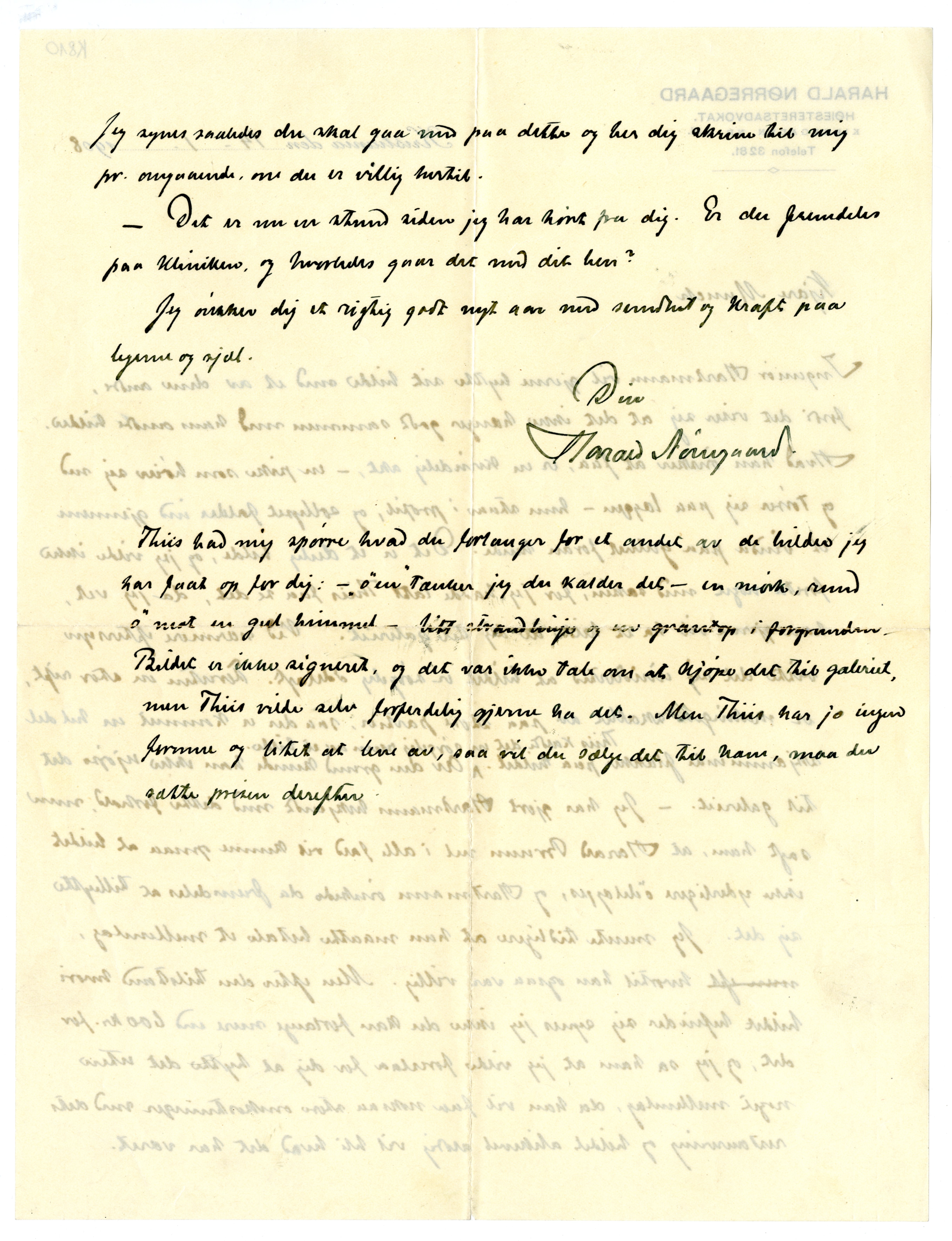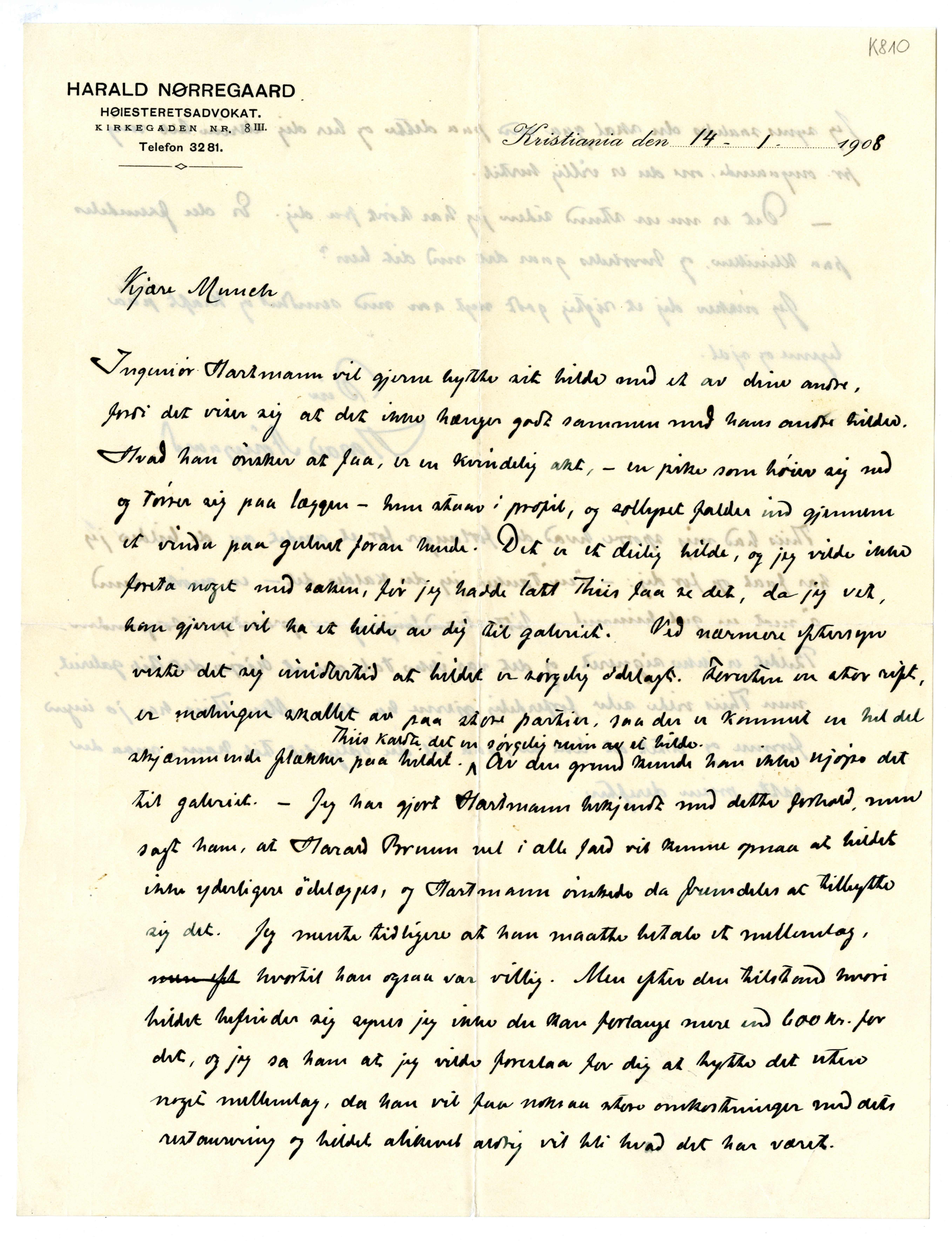 MM K 810, Munchmuseet. Datert 14.01.1909. Brev fra Harald Nørregaard.