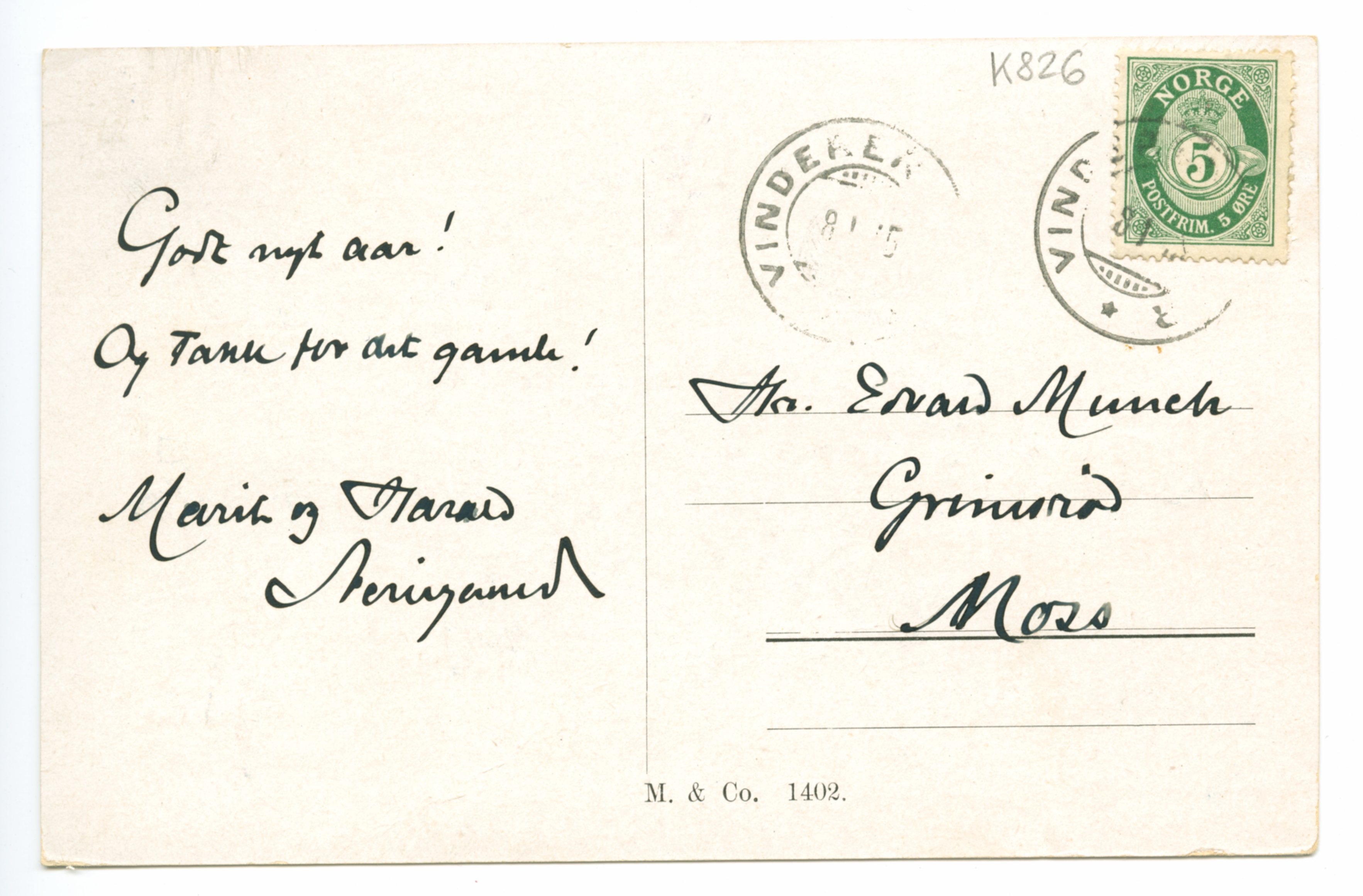 MM K 826, Munchmuseet. Datert 08.01.1915. Brev fra Harald Nørregaard.
