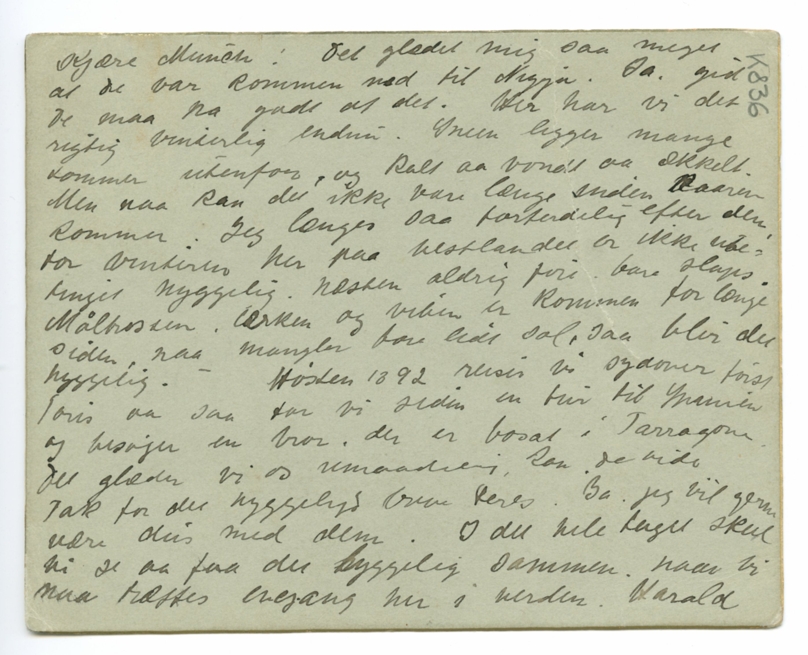 MM K 836, Munchmuseet. Datert 28.03.1891. Brev fra Aase Nørregaard.