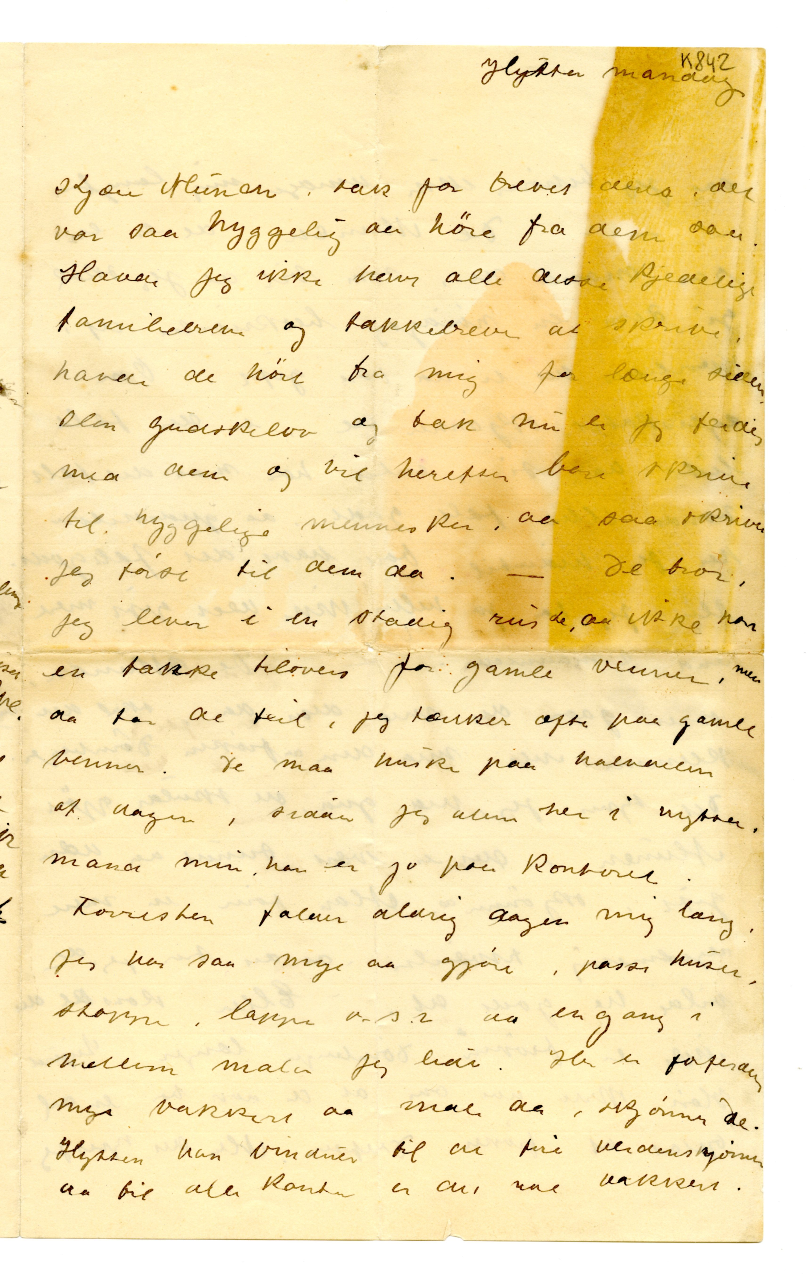 MM K 842, Munchmuseet. Datert [??].07.1889. Brev fra Aase Nørregaard.