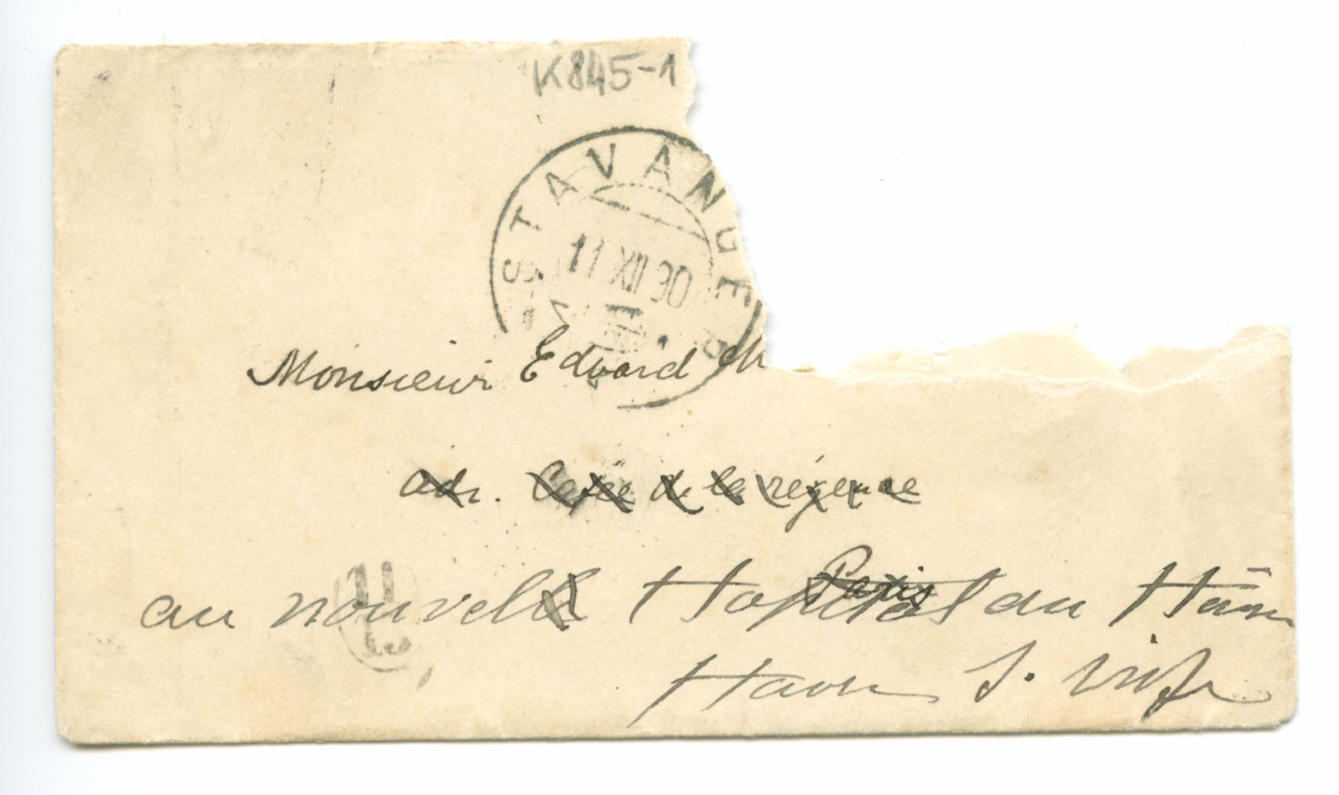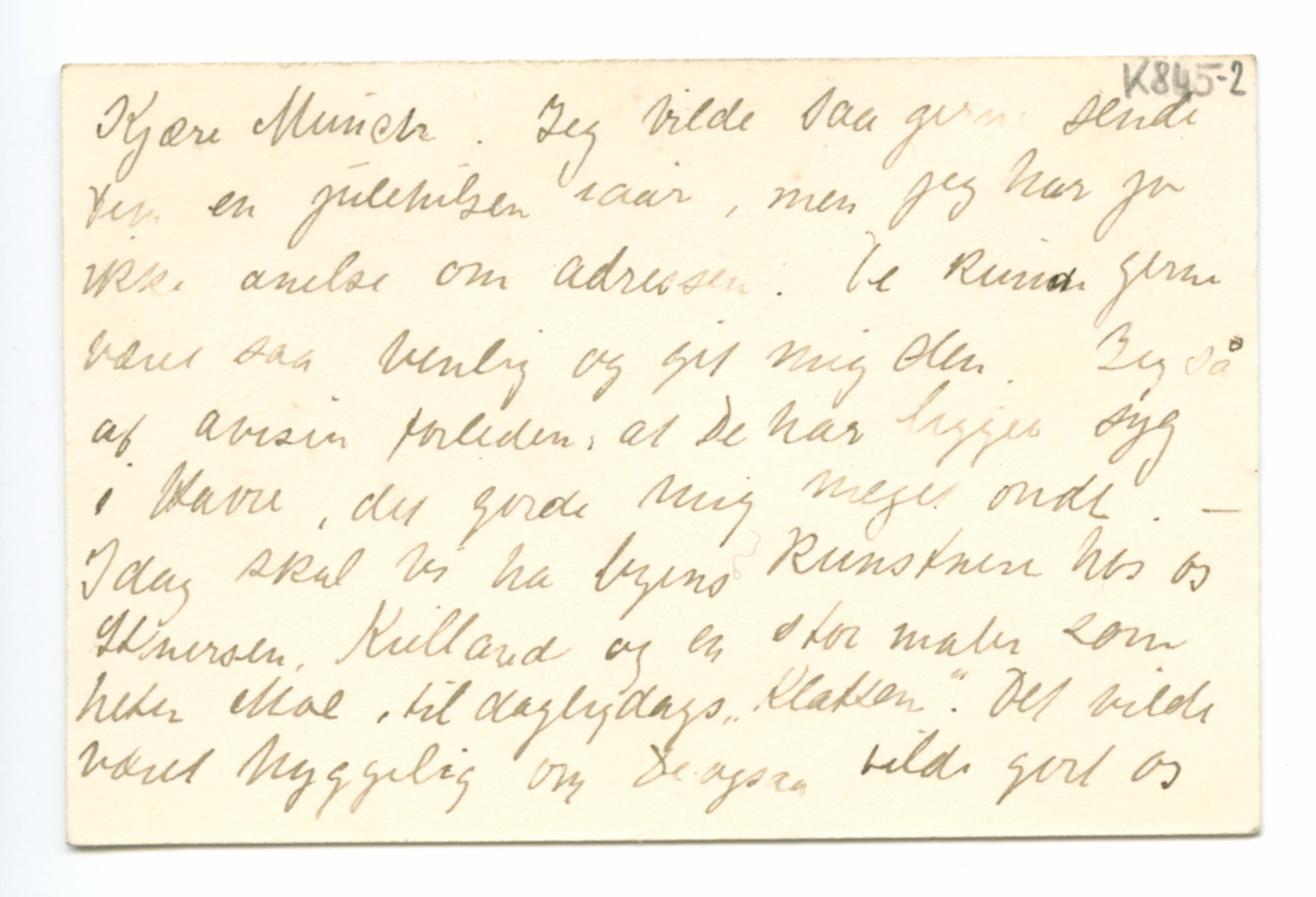 MM K 845, Munchmuseet. Datert 11.12.1890. Brev fra Aase Nørregaard.