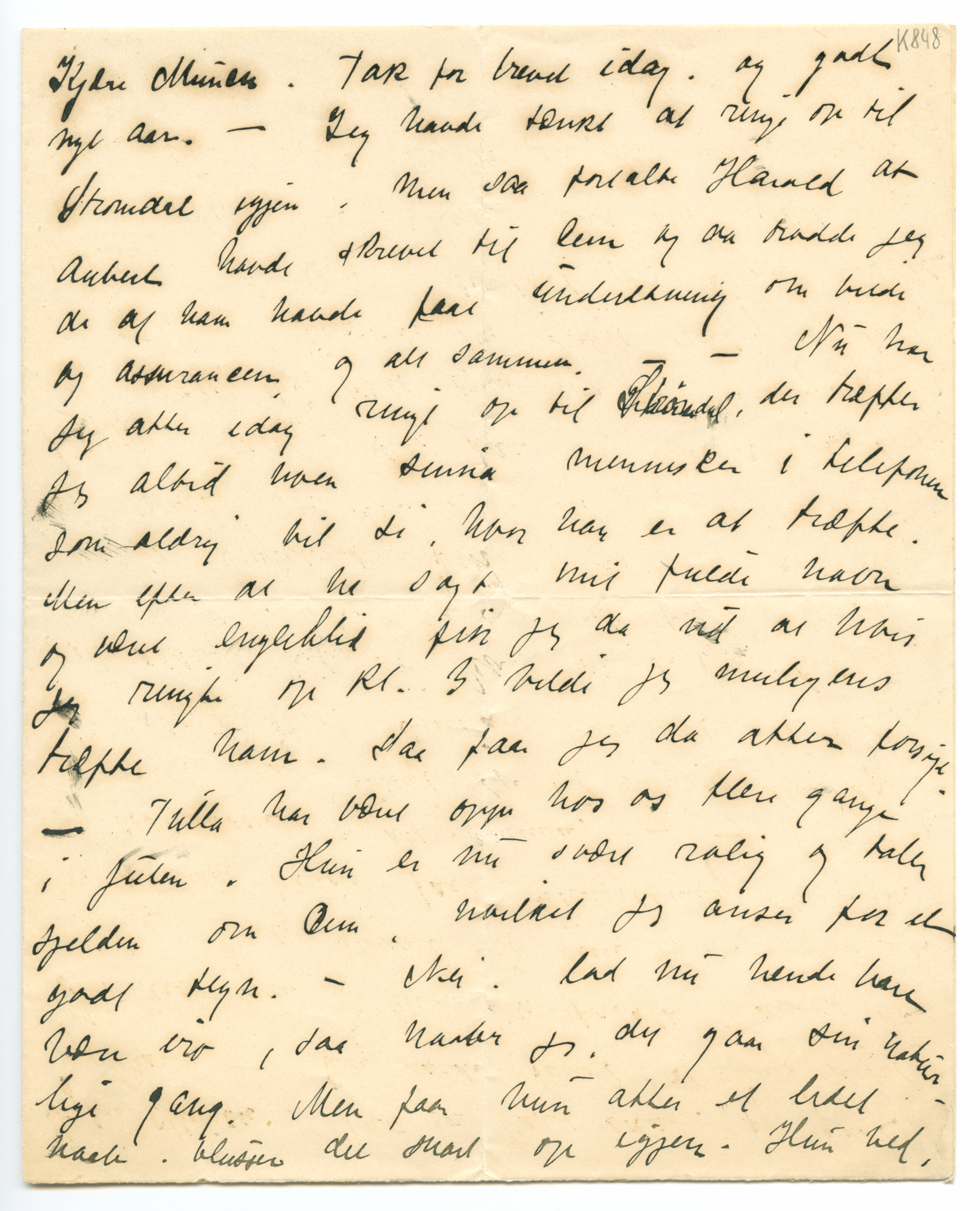 MM K 848, Munchmuseet. Datert [??].01.1901. Brev fra Aase Nørregaard.