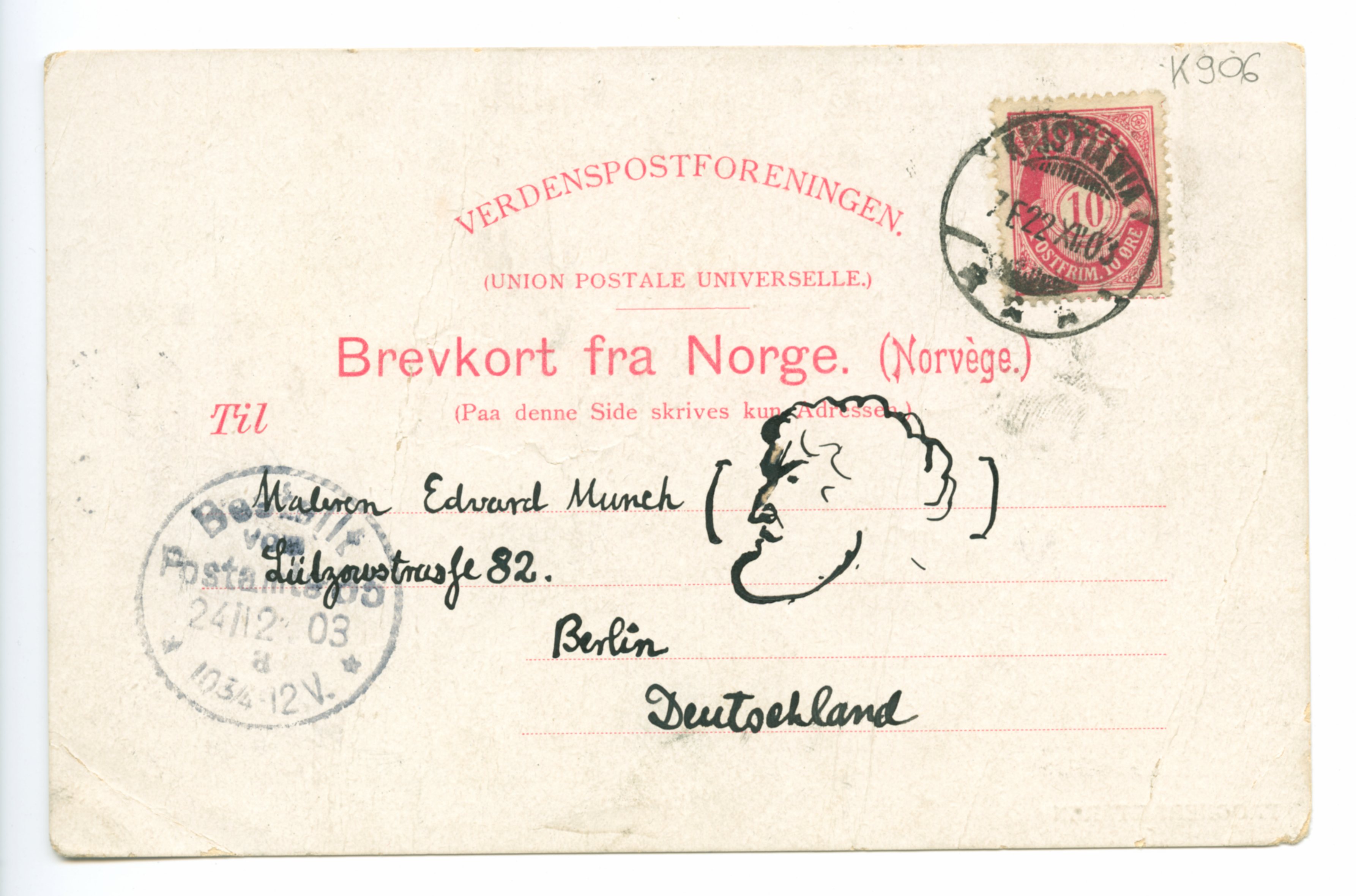 MM K 906, Munchmuseet. Datert 19.12.1903. Brev fra Ludvig Ravensberg, Christian Gierløff.