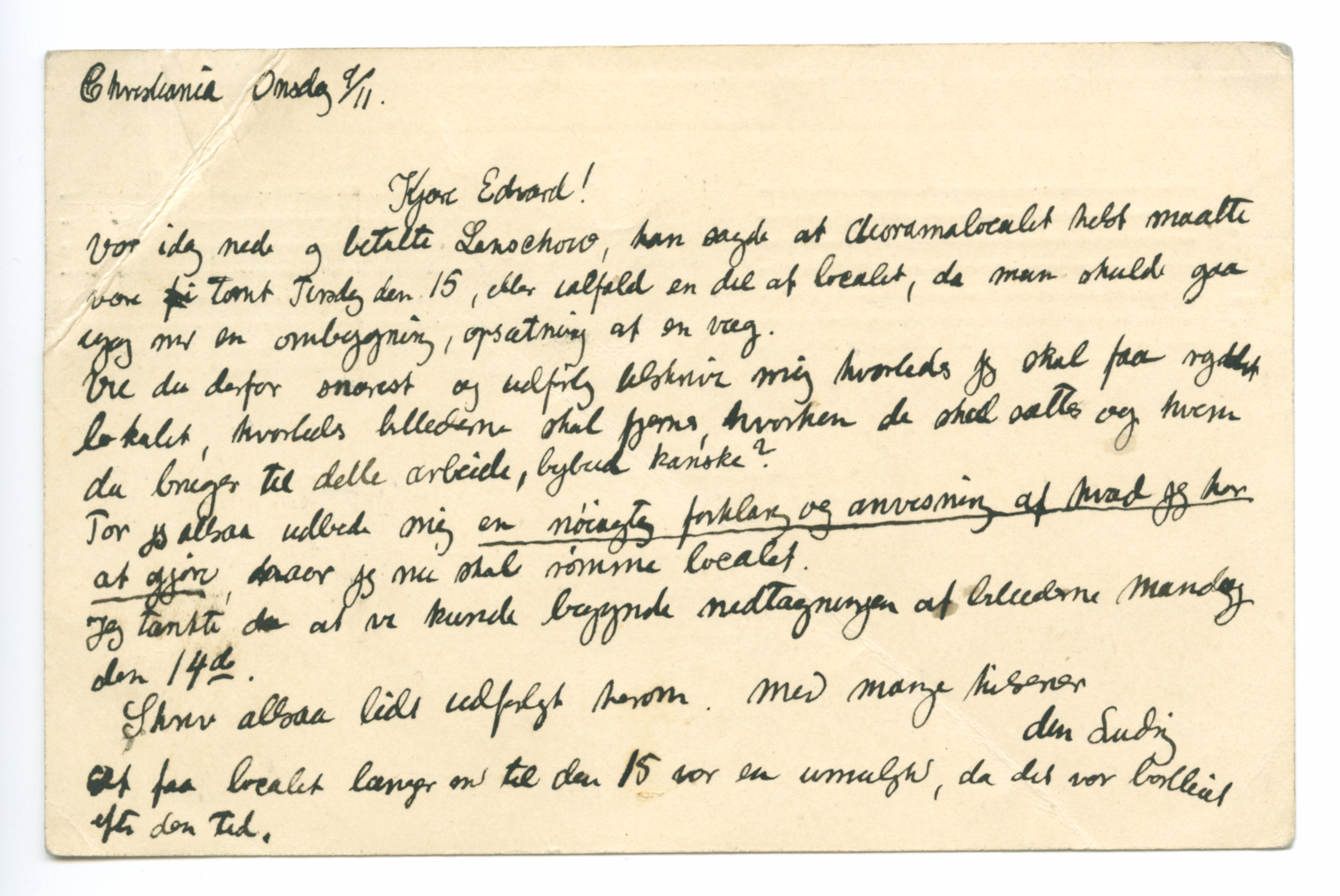 MM K 908, Munchmuseet. Datert 09.11.1904. Brev fra Ludvig Ravensberg.