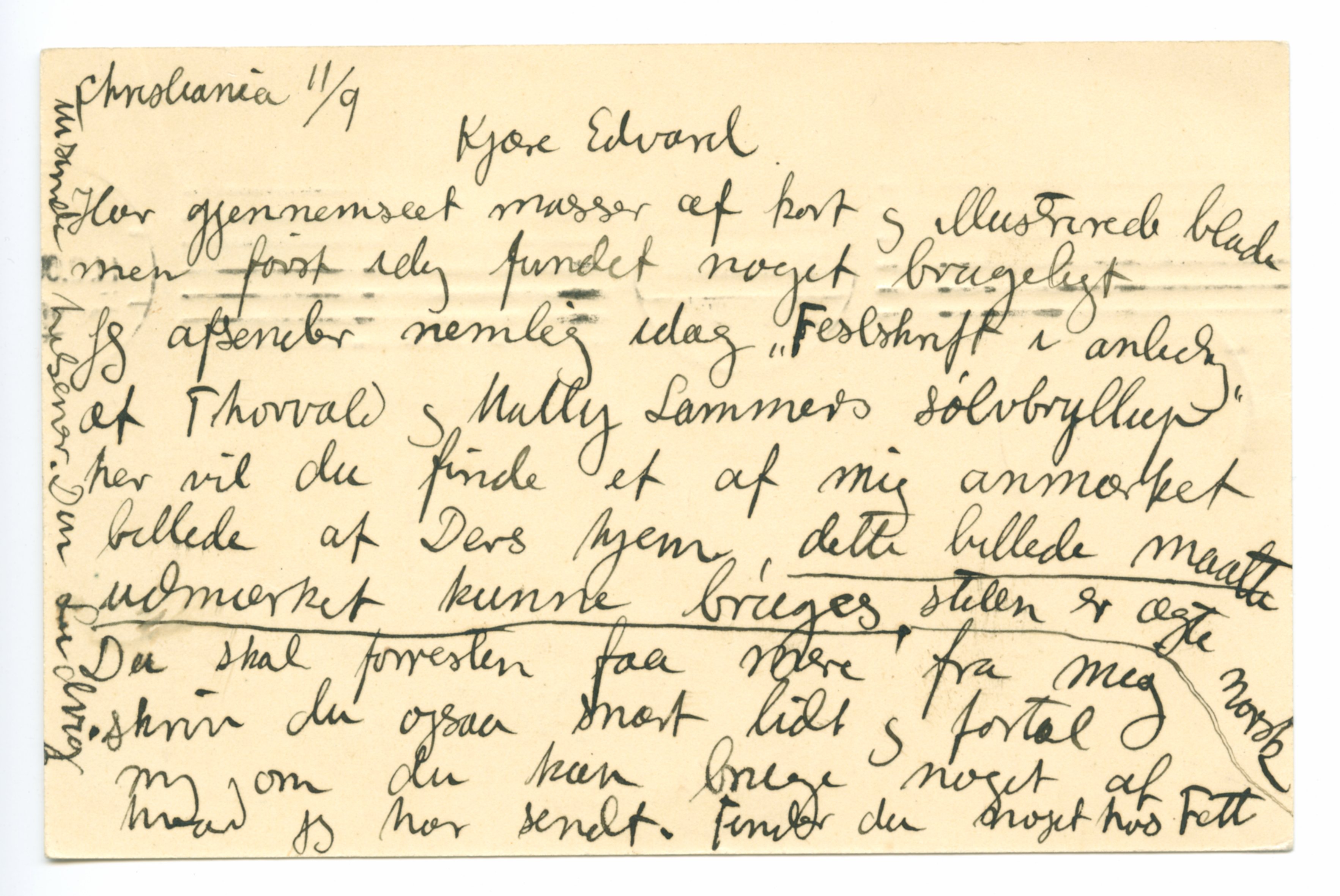 MM K 911, Munchmuseet. Datert 11.09.1906. Brev fra Ludvig Ravensberg.