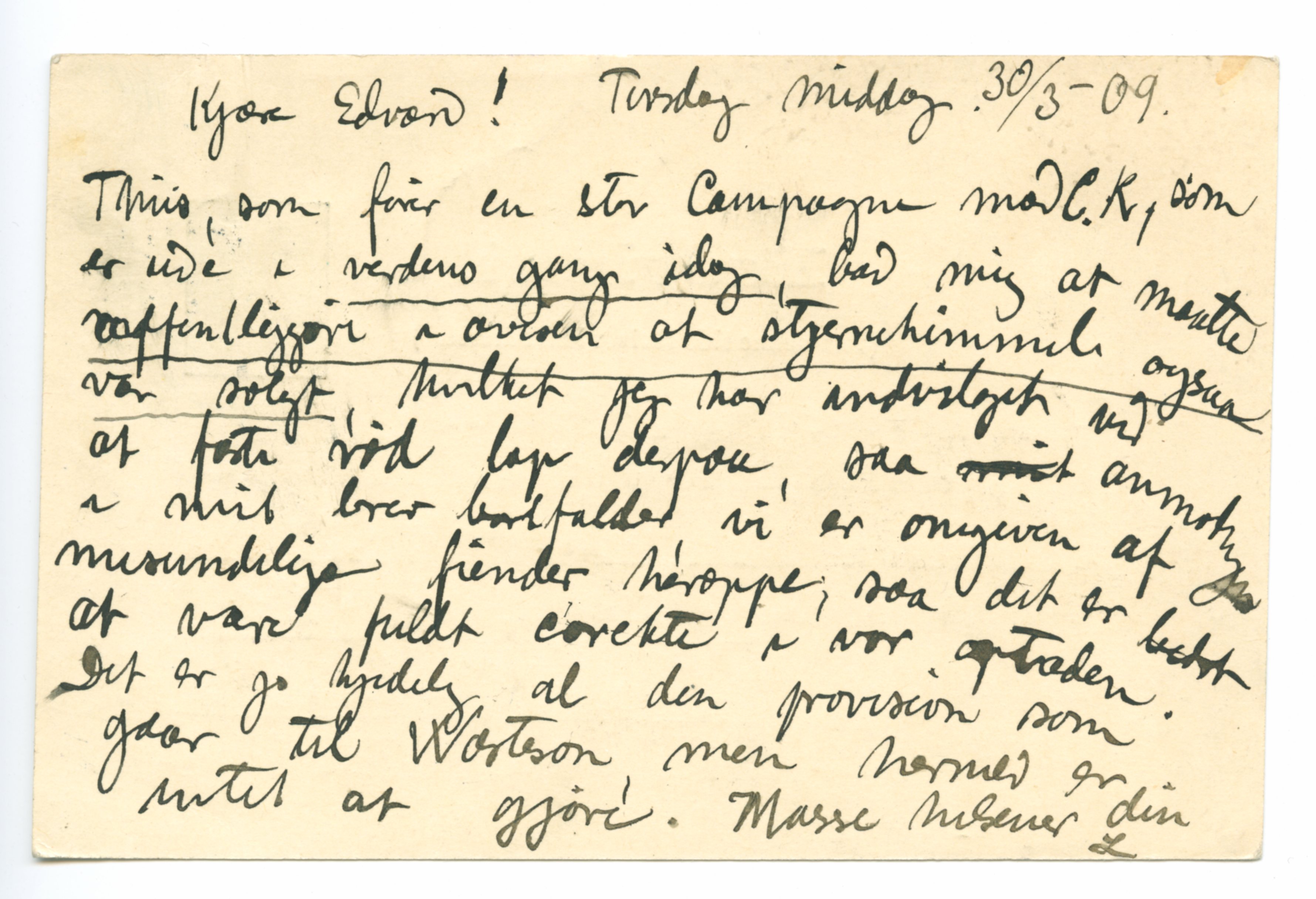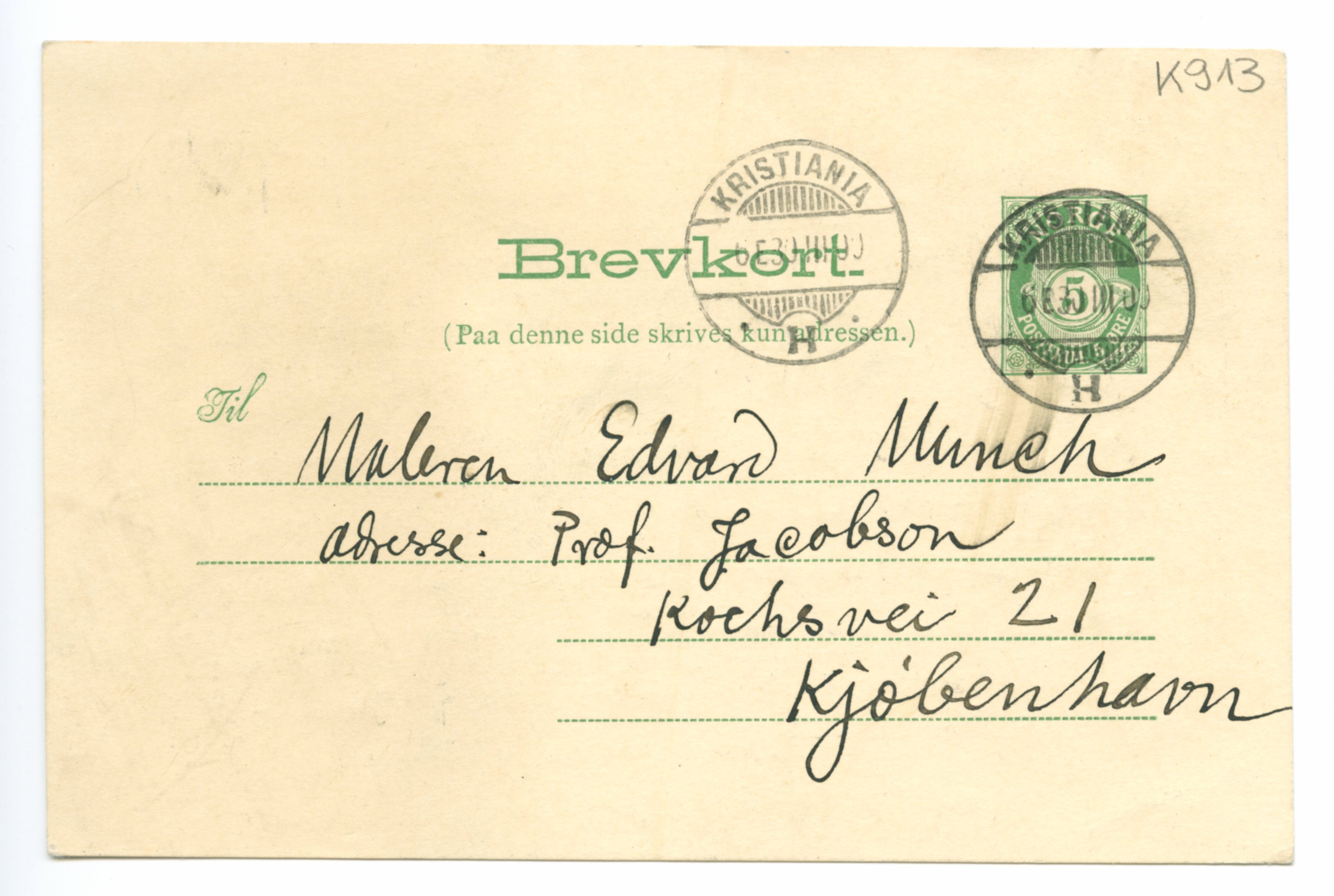 MM K 913, Munchmuseet. Datert 30.03.1909. Brev fra Ludvig Ravensberg.