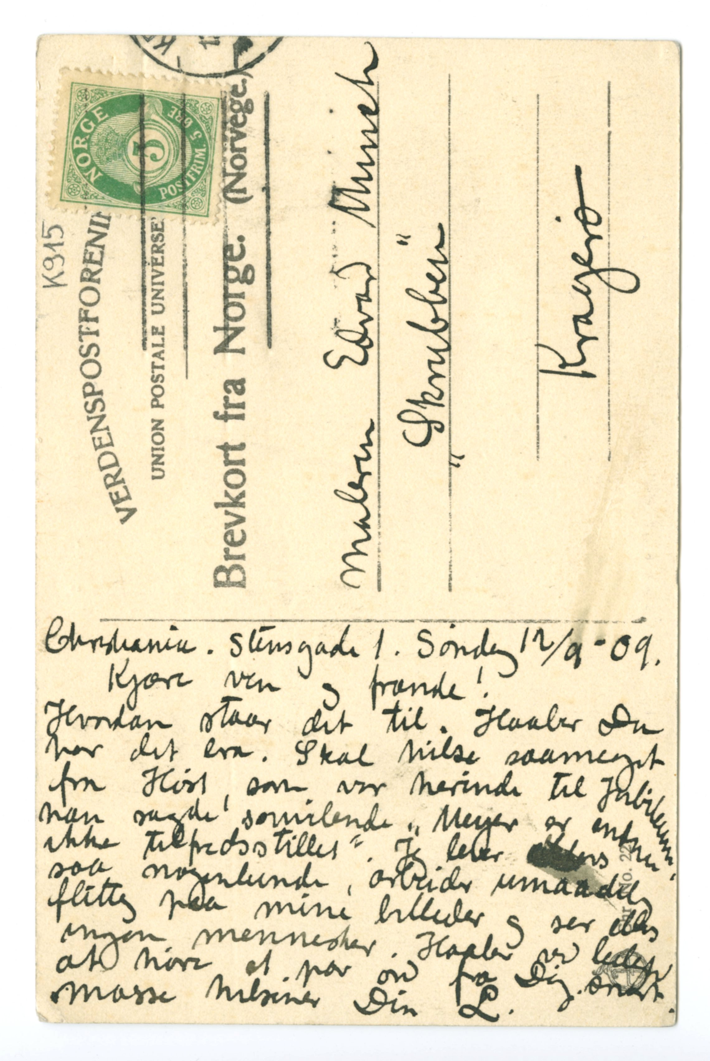 MM K 915, Munchmuseet. Datert 12.09.1909. Brev fra Ludvig Ravensberg.
