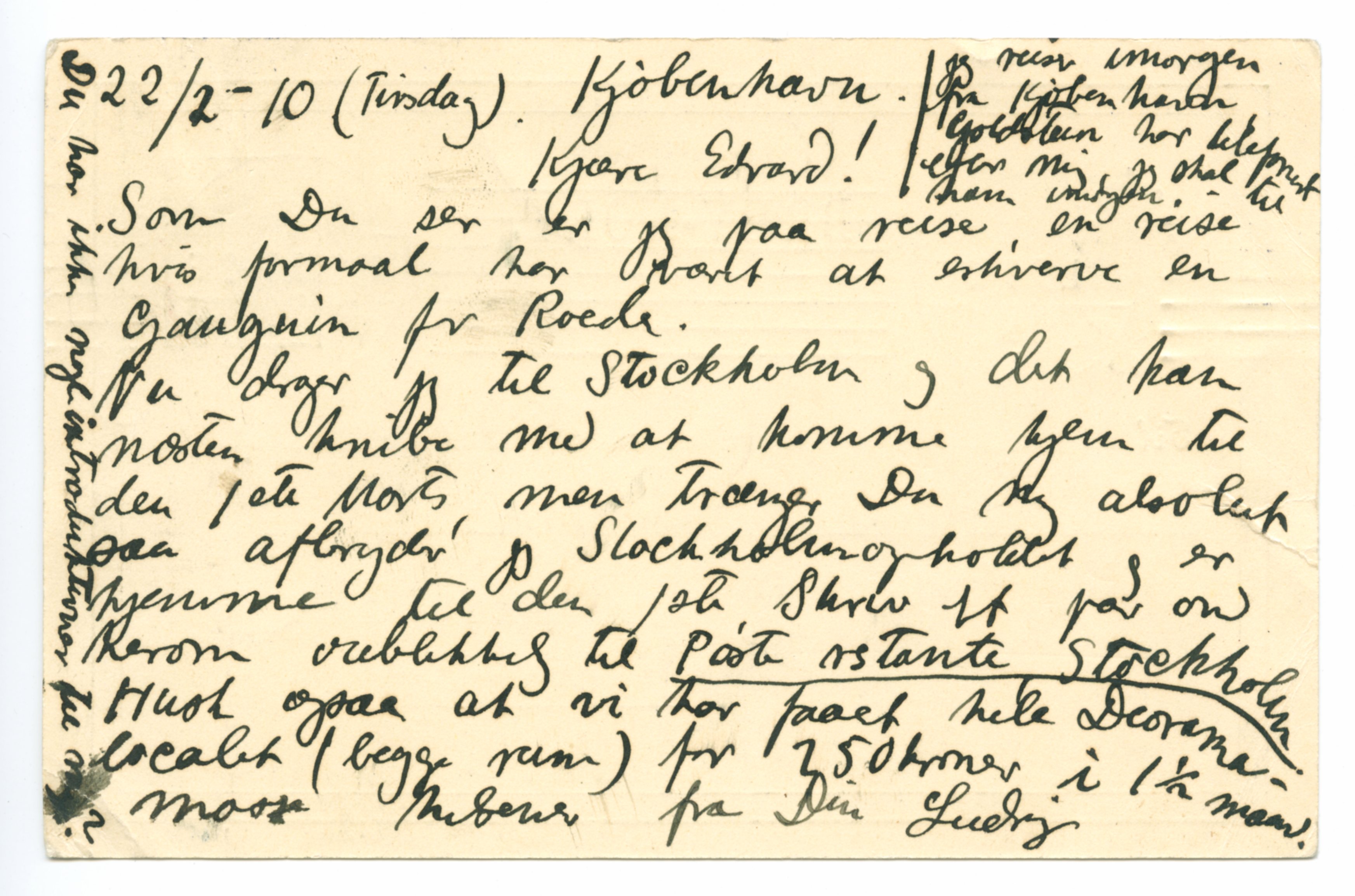 MM K 918, Munchmuseet. Datert 22.02.1910. Brev fra Ludvig Ravensberg.